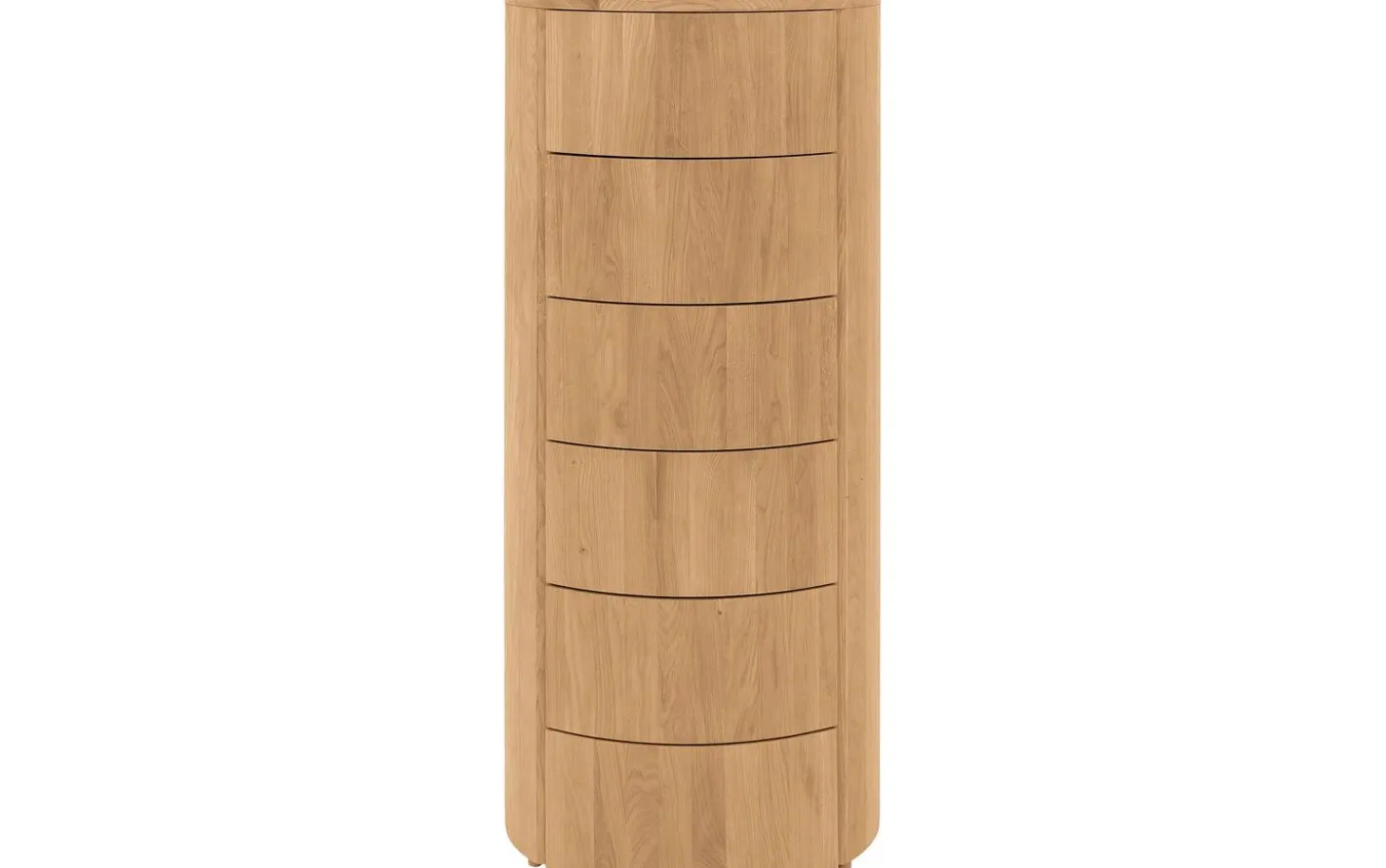 Der Schubladenschrank Denzo verleiht Ihrem Schlafzimmer das gewisse Extra. Denzo besticht durch sein ungewöhnliches Design: Die Kombination aus geradlinigen und runden Formen schafft ein wahres Unikat. Das moderne Modell ist aus massivem Eichenholz gefertigt und besticht durch sein warmes, natürliches Flair, das sich in jedes Schlafzimmer integrieren lässt. Dank des Eichenholzes hat diese Kommode zudem eine lange Lebensdauer. Gleich sechs Schubladen bieten reichlich Stauraum für Ihre persönlichen Gegenstände. Die Kommode ist mit einem passenden Nachtschränkchen und Bett aus der Denzo-Kollektion kombinierbar.