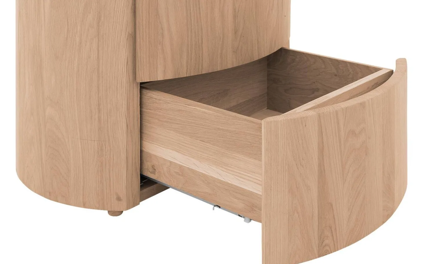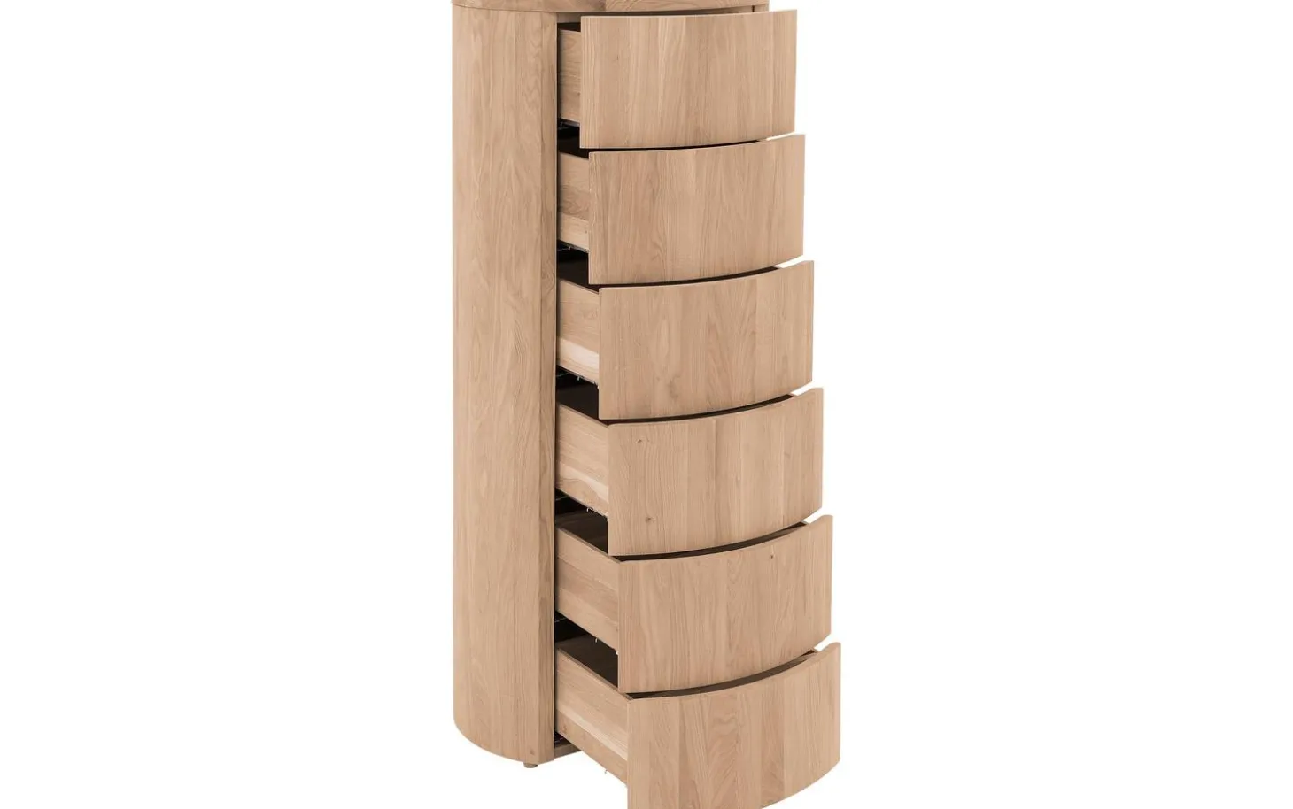 Der Schubladenschrank Denzo verleiht Ihrem Schlafzimmer das gewisse Extra. Denzo besticht durch sein ungewöhnliches Design: Die Kombination aus geradlinigen und runden Formen schafft ein wahres Unikat. Das moderne Modell ist aus massivem Eichenholz gefertigt und besticht durch sein warmes, natürliches Flair, das sich in jedes Schlafzimmer integrieren lässt. Dank des Eichenholzes hat diese Kommode zudem eine lange Lebensdauer. Gleich sechs Schubladen bieten reichlich Stauraum für Ihre persönlichen Gegenstände. Die Kommode ist mit einem passenden Nachtschränkchen und Bett aus der Denzo-Kollektion kombinierbar.
