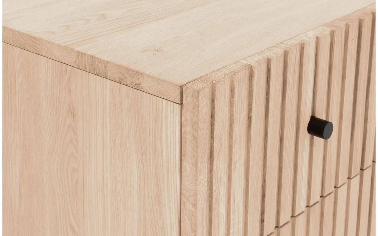Das Eichenholz ist robust und langlebig, sodass Sie jahrelang Freude an dieser nachhaltigen Kommode haben werden. Die geräumigen Schublade und Türen bieten genügend Stauraum für persönliche Gegenstände. Damit gehört Unordnung im Schlafzimmer der Vergangenheit an! Durch das Soft-Closing-System schließen die Schublade und Türen geräuschlos und leicht.