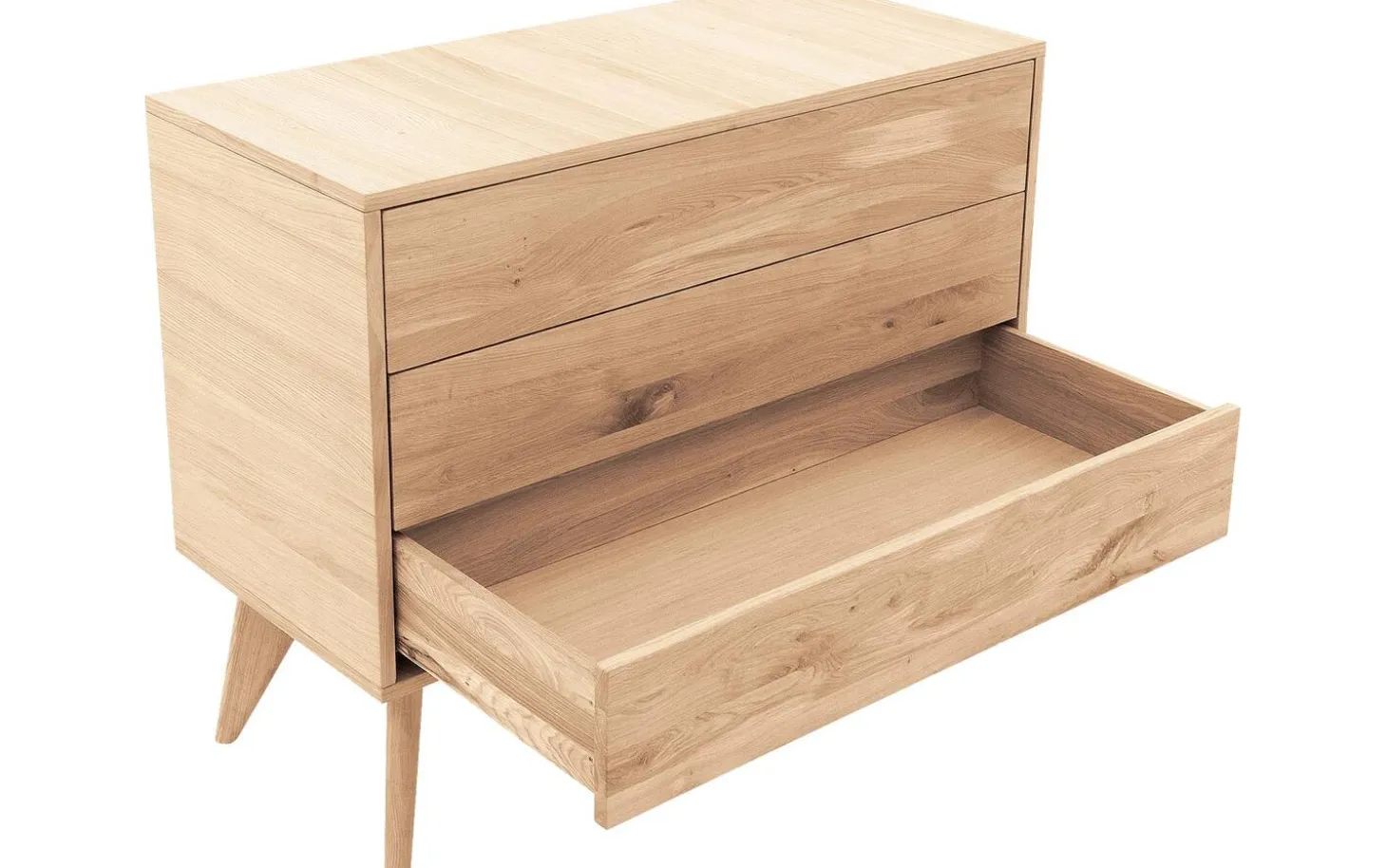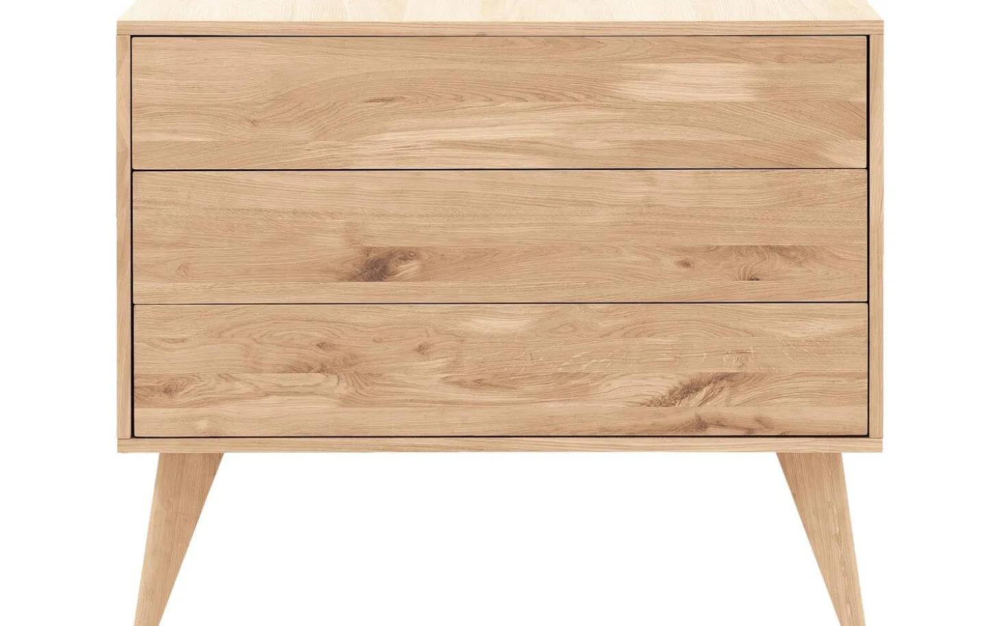 Mit der Kommode Cosima wähnen Sie sich mitten in der Botanik. Ihre warme, natürliche Optik verdankt Cosima dem massiven Eichenholz. Die abgerundeten Füße verleihen der Kommode eine einzigartige und ruhige Optik. Dank des robusten Eichenholzes ist die Kommode besonders langlebig. Die Kommode verfügt über drei Schubladen mit praktischem Push-to-open-System. Dadurch erhalten Sie genügend Platz zur Aufbewahrung Ihrer Siebensachen. Oben auf der Kommode können Sie Ihre schönsten Wohnaccessoires präsentieren.