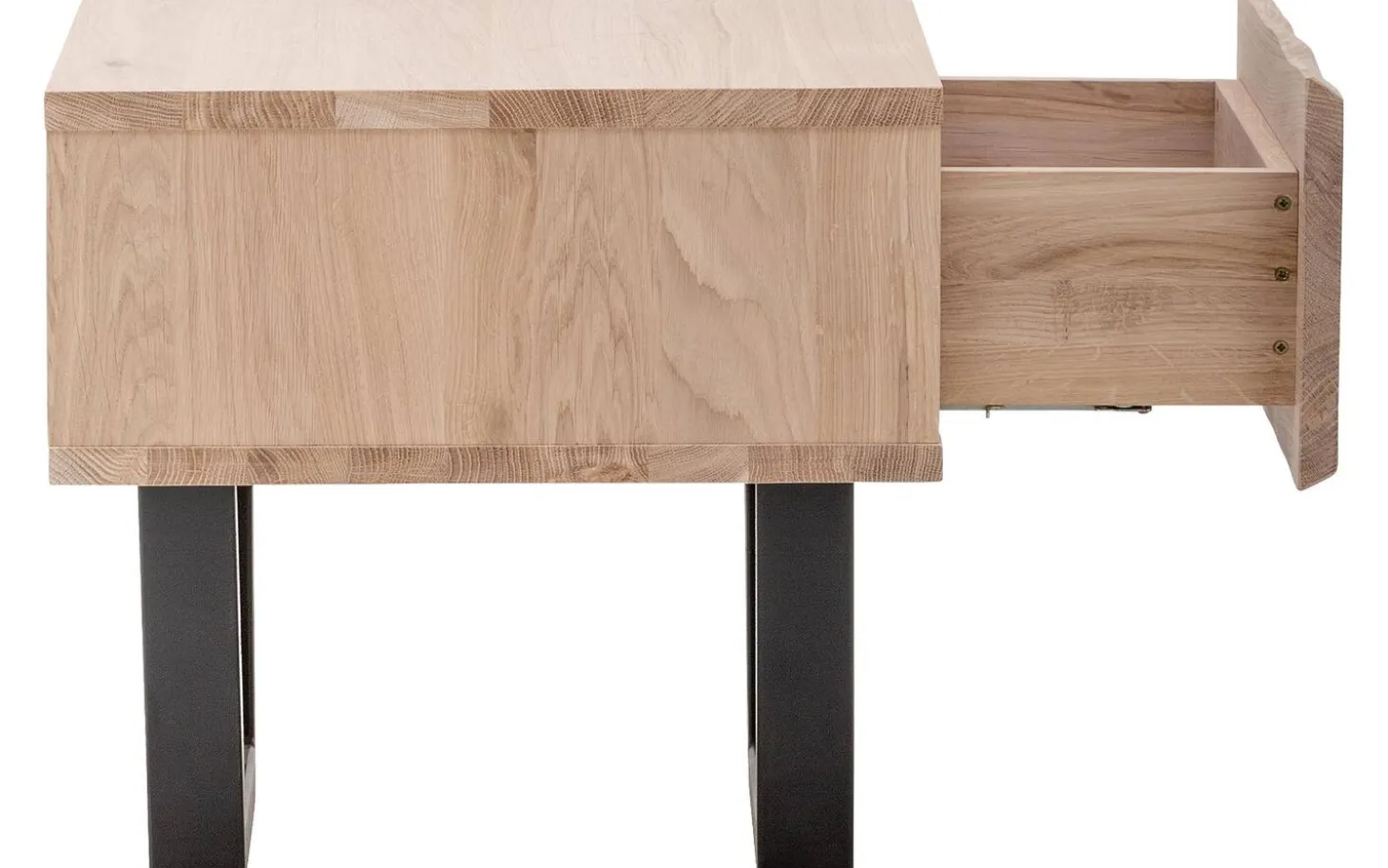 Nachtkastje Slade is een ware blikvanger in jouw slaapkamer dankzij het unieke design. Dankzij het massieve eikenhout en de iets ruigere afwerking van de lade heeft het nachtkastje een natuurlijke look. Het zwart metalen onderstel geeft het nachtkastje een open en tegelijk stoere uitstraling. Hierdoor past Slade zowel in een landelijke als een industriële slaapkamer. Het duurzame eikenhout zorgt ervoor dat Slade stevig is waardoor je lang plezier hebt van het nachtkastje. Dankzij de lade, voorzien van een handig push to open systeem, is er genoeg plaats voor spullen die je graag dicht bij je hebt, zoals je favoriete boek of een fijne handcrème. Match nachtkastje Slade met het bed uit dezelfde serie voor een complete natuurlijke sfeer in jouw slaapkamer.