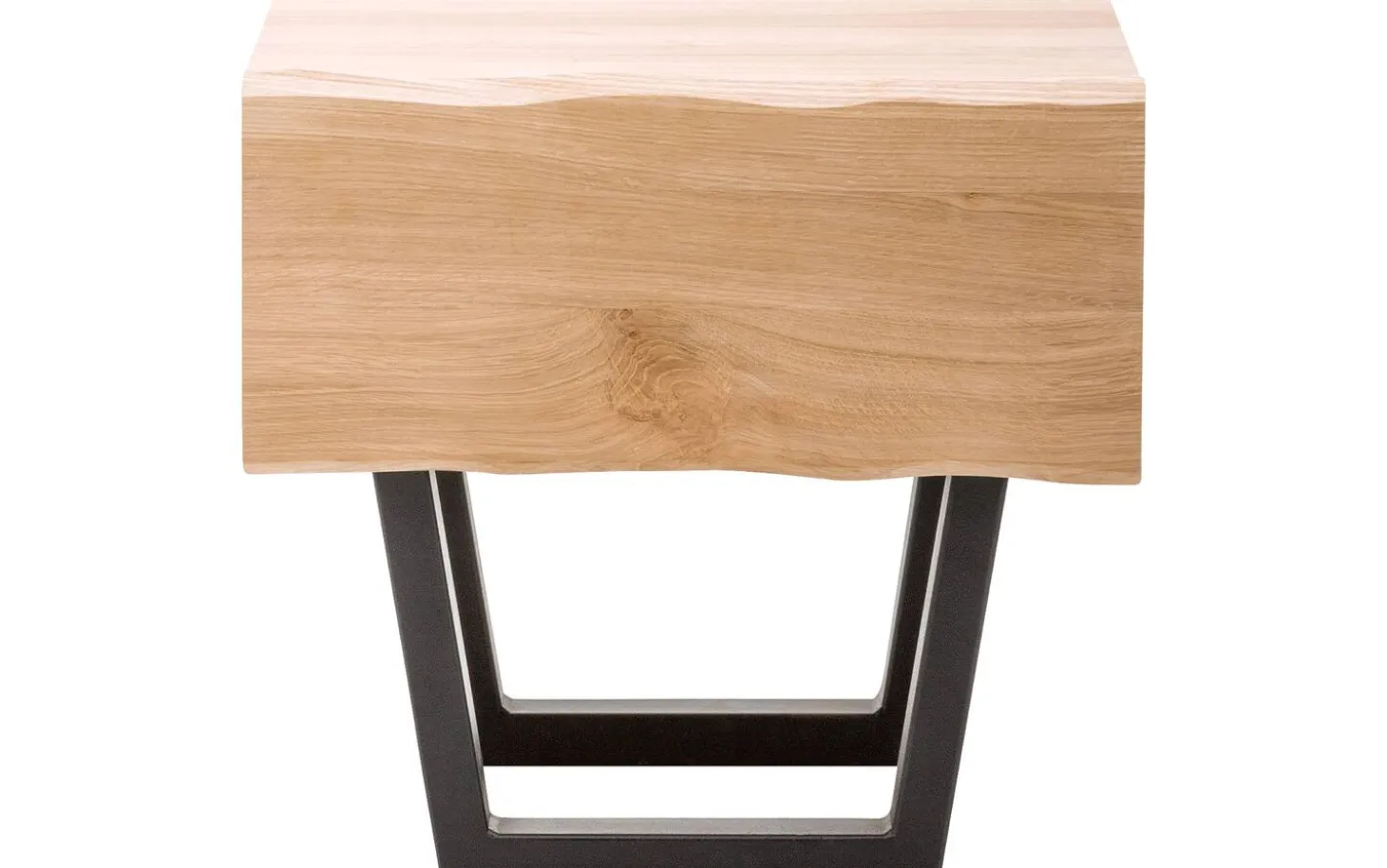 Nachtkastje Slade is een ware blikvanger in jouw slaapkamer dankzij het unieke design. Dankzij het massieve eikenhout en de iets ruigere afwerking van de lade heeft het nachtkastje een natuurlijke look. Het zwart metalen onderstel geeft het nachtkastje een open en tegelijk stoere uitstraling. Hierdoor past Slade zowel in een landelijke als een industriële slaapkamer. Het duurzame eikenhout zorgt ervoor dat Slade stevig is waardoor je lang plezier hebt van het nachtkastje. Dankzij de lade, voorzien van een handig push to open systeem, is er genoeg plaats voor spullen die je graag dicht bij je hebt, zoals je favoriete boek of een fijne handcrème. Match nachtkastje Slade met het bed uit dezelfde serie voor een complete natuurlijke sfeer in jouw slaapkamer.