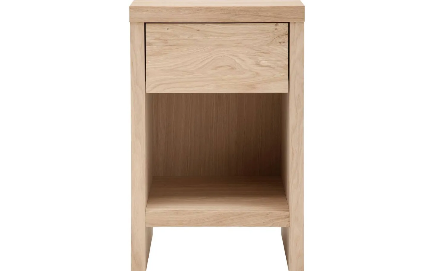 Das Nachtschränkchen Edition ist eine Bereicherung für Ihr Schlafzimmer. Edition ist aus ansprechendem unbehandeltem Eichenholz gefertigt, das für seine Maserung und Farbschattierungen bekannt ist. Dies verleiht Ihrem Schlafzimmer eine natürliche und warme Optik. Dank dieser Optik integriert sich Edition in jedes Schlafzimmer. Das Nachtschränkchen verfügt über eine Schublade und ein offenes Fach und bietet somit ausreichend Stauraum für all Ihre persönlichen Gegenstände.