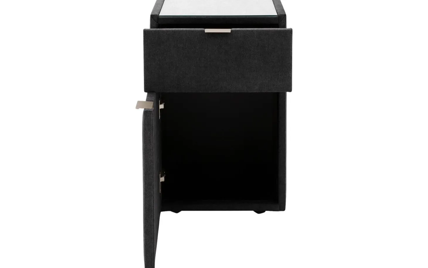 Mit dem Nachtschränkchen Briljant Luxe bringen Sie Stil und modernes Design in Ihr Schlafzimmer. Durch den Stoffbezug in Kombination mit der Oberplatte aus Glas ist dieses Nachtschränkchen ein echter Blickfang. Die Oberplatte aus Glas dient dem Nachtschränkchen nicht nur als Schutz, sondern sorgt auch für zusätzliche Stabilität für Gegenstände, die auf dem Nachtschränkchen abgestellt werden. Das Nachtschränkchen Briljant Luxe ist mit einer Schublade und einer Flügeltür versehen, was eine Vielzahl von Aufbewahrungsmöglichkeiten bietet. Ideal für all Ihre persönlichen Gegenstände! Schaffen Sie ein ansprechendes Gesamtbild, indem Sie das Nachtschränkchen Brilliant Luxe mit dem Boxspringbett Brilliant Luxe kombinieren.