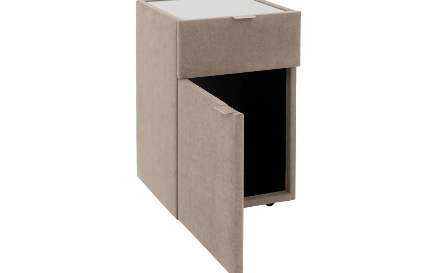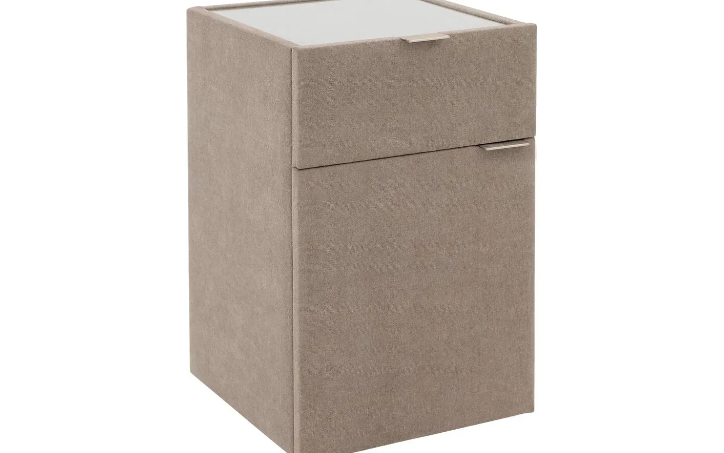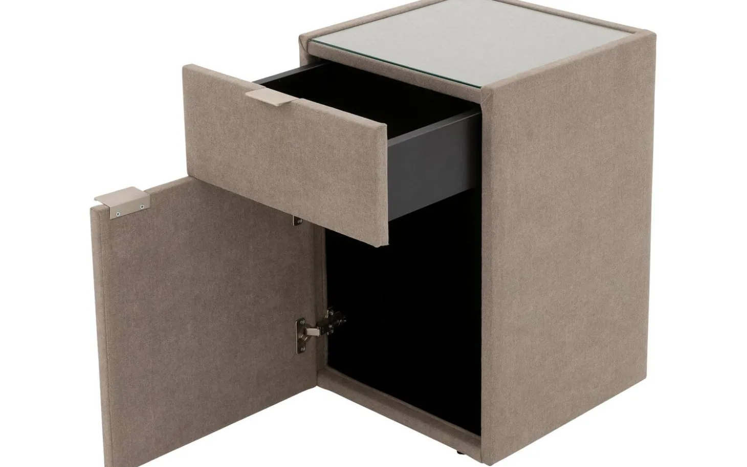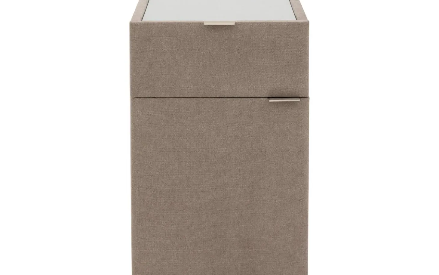 Mit dem Nachtschränkchen Briljant Luxe bringen Sie Stil und modernes Design in Ihr Schlafzimmer. Durch den Stoffbezug in Kombination mit der Oberplatte aus Glas ist dieses Nachtschränkchen ein echter Blickfang. Die Oberplatte aus Glas dient dem Nachtschränkchen nicht nur als Schutz, sondern sorgt auch für zusätzliche Stabilität für Gegenstände, die auf dem Nachtschränkchen abgestellt werden. Das Nachtschränkchen Briljant Luxe ist mit einer Schublade und einer Flügeltür versehen, was eine Vielzahl von Aufbewahrungsmöglichkeiten bietet. Ideal für all Ihre persönlichen Gegenstände! Schaffen Sie ein ansprechendes Gesamtbild, indem Sie das Nachtschränkchen Brilliant Luxe mit dem Boxspringbett Brilliant Luxe kombinieren.