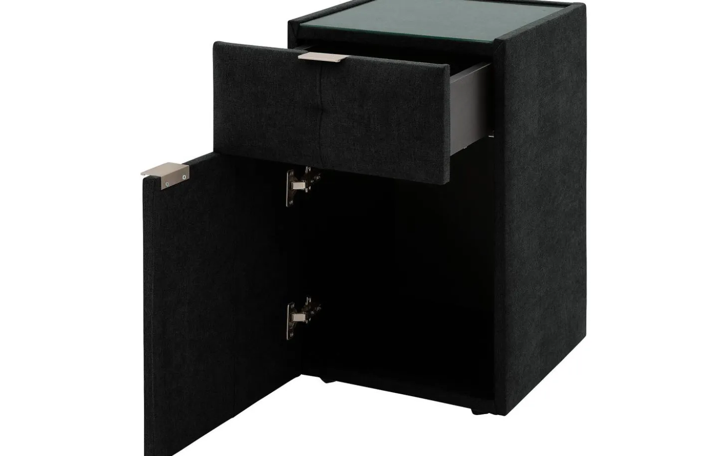 Bringen Sie mit dem Nachtschränkchen Briljant Royal Luxus in Ihr Schlafzimmer! Das Design ist inspiriert von Einflüssen aus der Modewelt. In Kombination mit der blind genoppten Vorderseite ergibt sich ein edles Modell. Die Schublade und der Schrankteil bieten genügend Stauraum für Ihre persönlichen Gegenstände. Die Oberplatte aus Glas dient dem Nachtschränkchen nicht nur als Schutz, sondern sorgt auch für zusätzliche Stabilität, wenn Gegenstände auf dem Nachtschränkchen abgestellt werden. Das Nachtschränkchen Briljant Royal lässt sich perfekt mit dem Boxspringbett Briljant Royal kombinieren, sodass Sie Ihrem Schlafzimmer den letzten Schliff verleihen können. Ausgesprochen modern!
