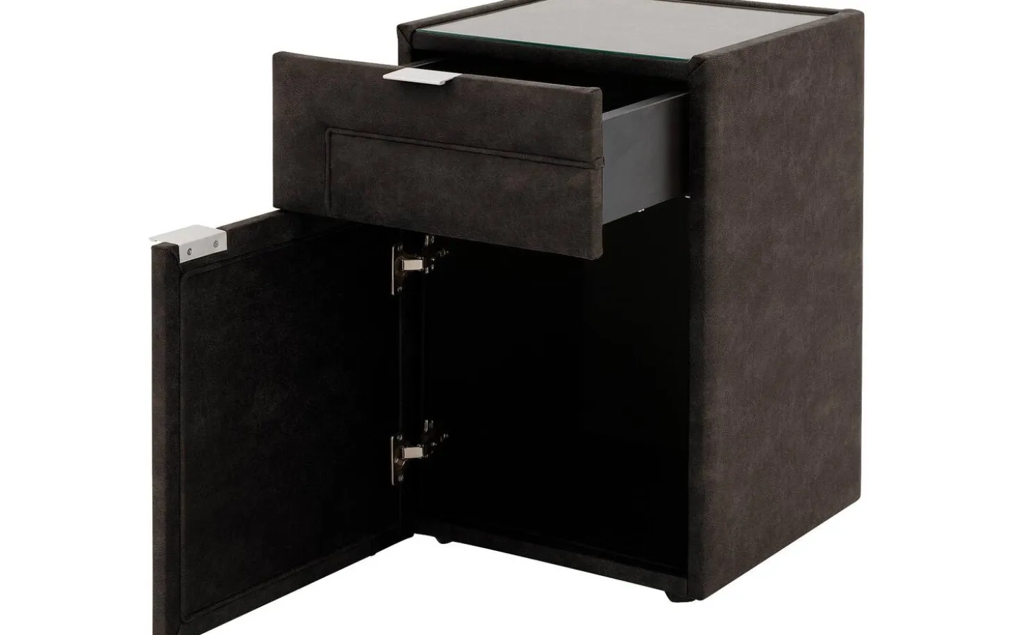 Geef jouw slaapkamer een luxe hotelsfeer met het nachtkastje Nomade Sahara. De landelijke invloeden en ambachtelijke siernaden geven de slaapkamer een stoere uitstraling. Het glasplaatje boven op het nachtkastje zorgt voor zowel bescherming als voor meer stabiliteit wanneer er voorwerpen op worden geplaatst. Dankzij de lade en openslaande deur is er voldoende opbergruimte voor persoonlijke spulletjes. Maak de look compleet door het Nachtkastje Nomade Sahara te combineren met Boxspring Nomade Sahara.