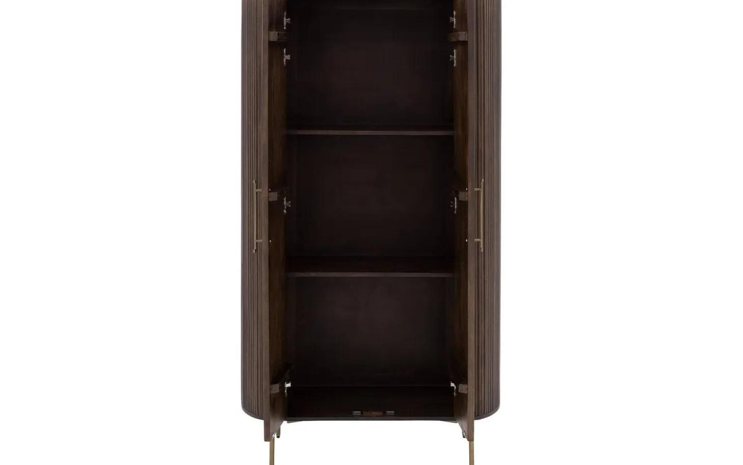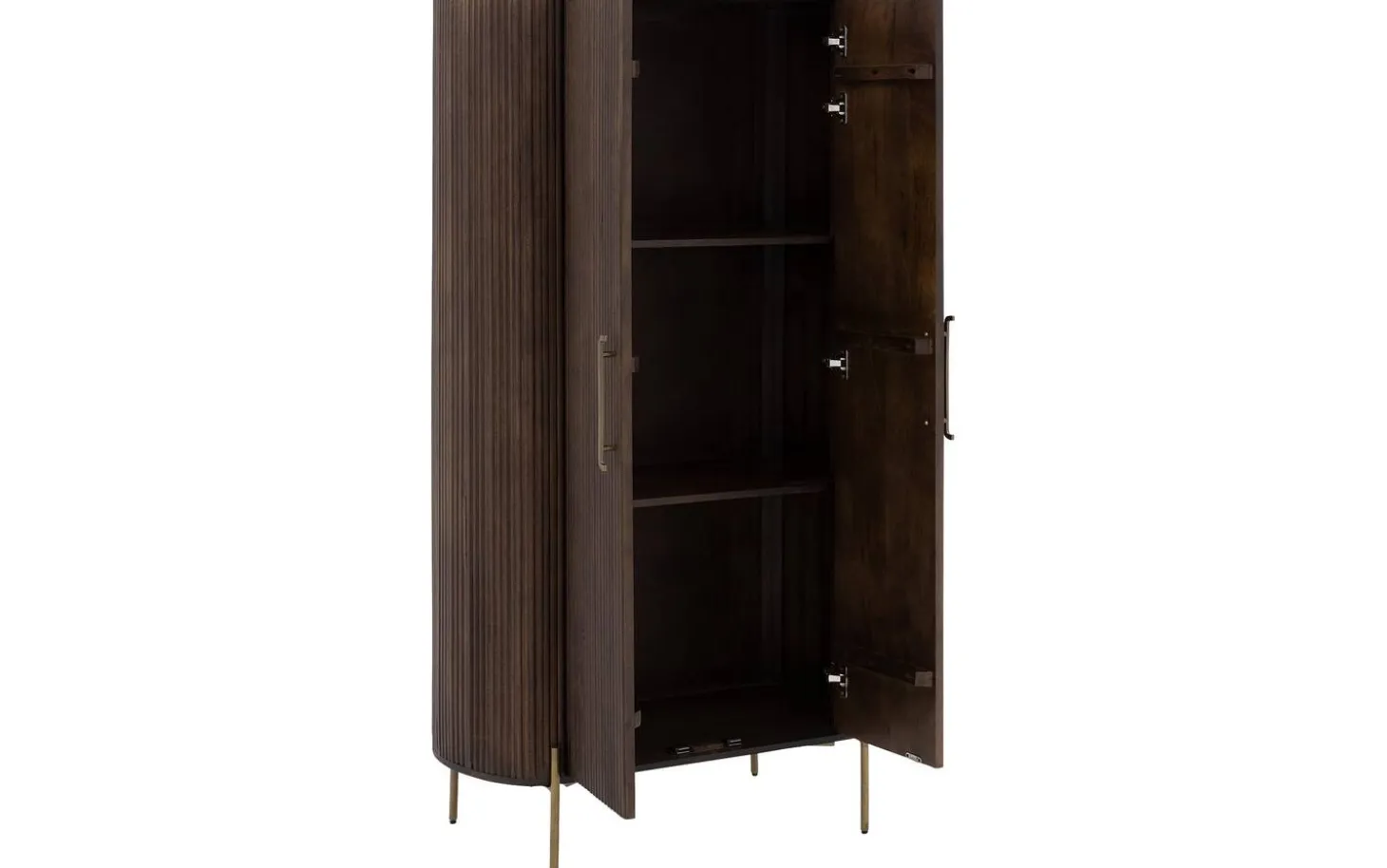 Opbergkast Dagmar combineert praktisch opbergen met stijlvol design. Dagmar is gemaakt van hoogwaardig mangohout en uitgevoerd in een warme, donkerbruine kleur. De soft touch lakafwerking geeft bescherming aan het hout én benadrukt de natuurlijke houtstructuur. De kast staat op slanke pootjes en is voorzien van subtiele handgrepen in een antiek gouden kleur, die een elegante touch toevoegen. Met zijn tijdloze look en hoogwaardige afwerking is opbergkast Dagmar een prachtige toevoeging aan elk interieur, en biedt hij volop opbergruimte zonder in te leveren op stijl.