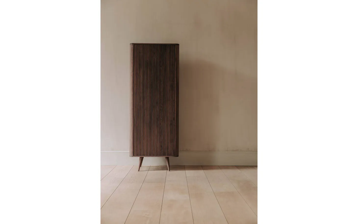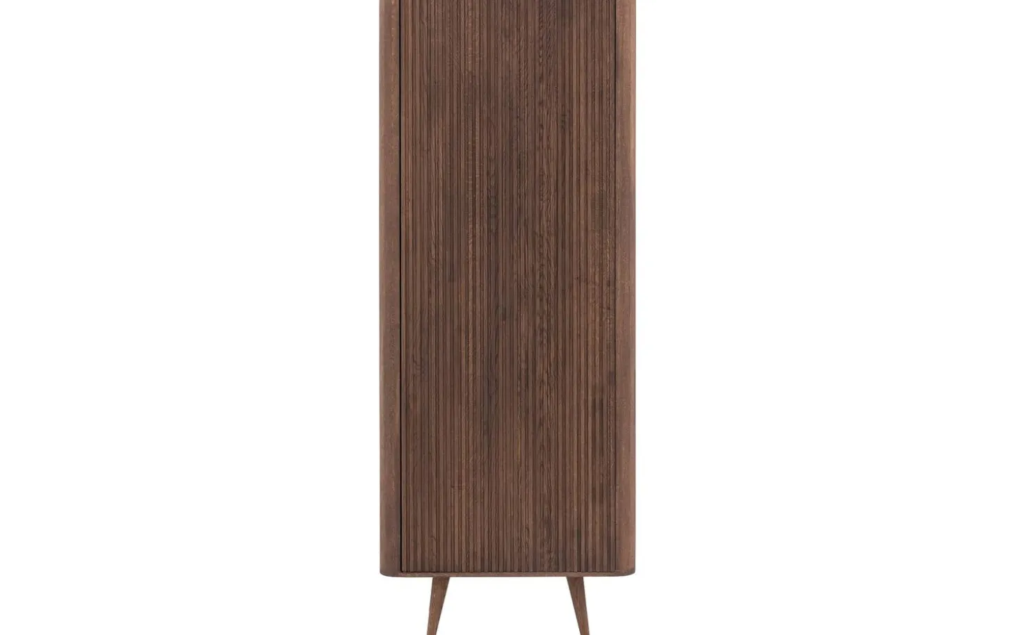 Aufbewahrungsschrank Seppe ist aus Eiche mit einem Soft-Touch-Lack in Nussfarbe gefertigt. Diese Verarbeitung schützt das Holz vor täglicher Nutzung und verleiht eine warme, natürliche Ausstrahlung. Das Push-to-Open-System macht Griffe überflüssig für einen eleganten Look.