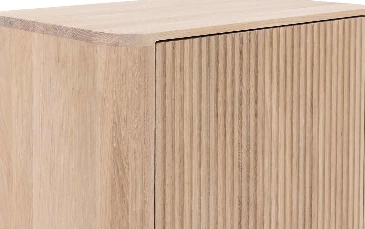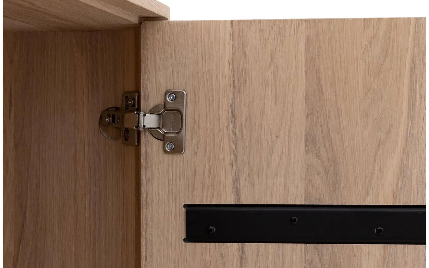 Das nachhaltige Eichenholz mit weißer Öl-Verarbeitung verleiht diesem Aufbewahrungsschrank eine natürliche, warme Ausstrahlung, die jahrelang schön bleibt. Die schützende Öl-Schicht bringt die natürliche Holzmaserung wunderschön zur Geltung und schützt vor täglicher Abnutzung.