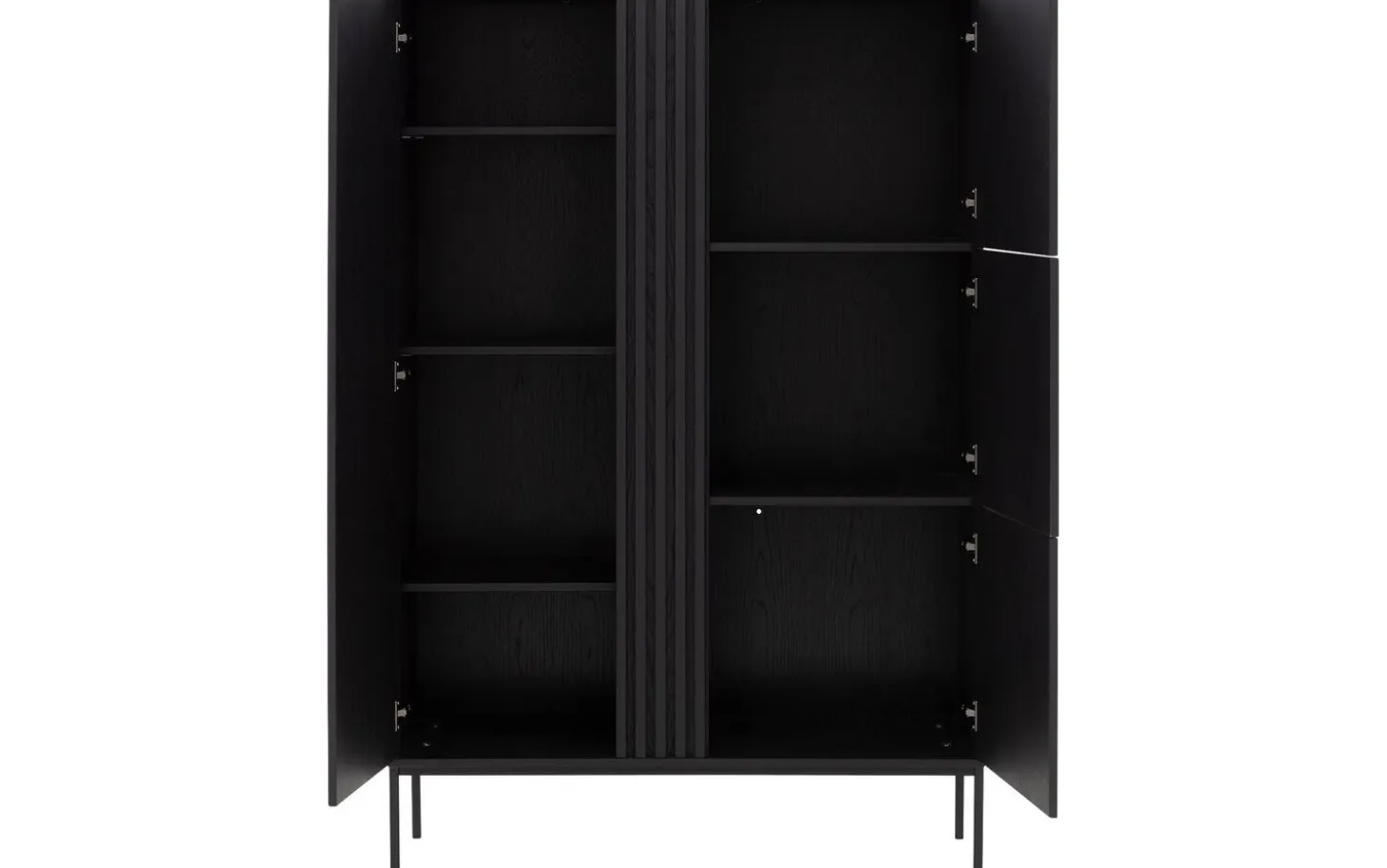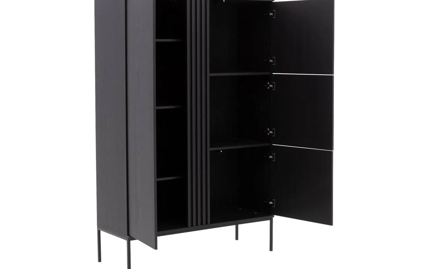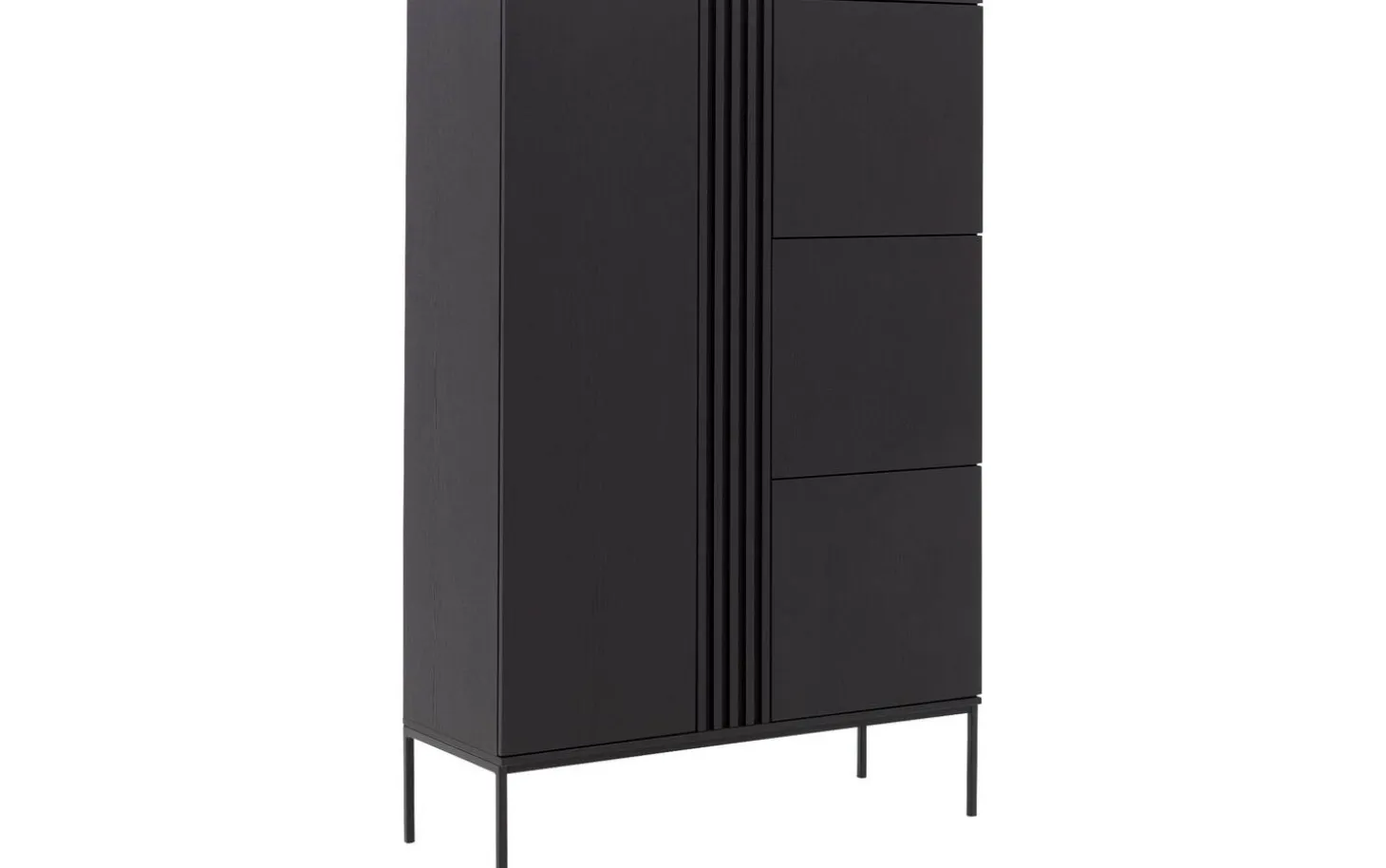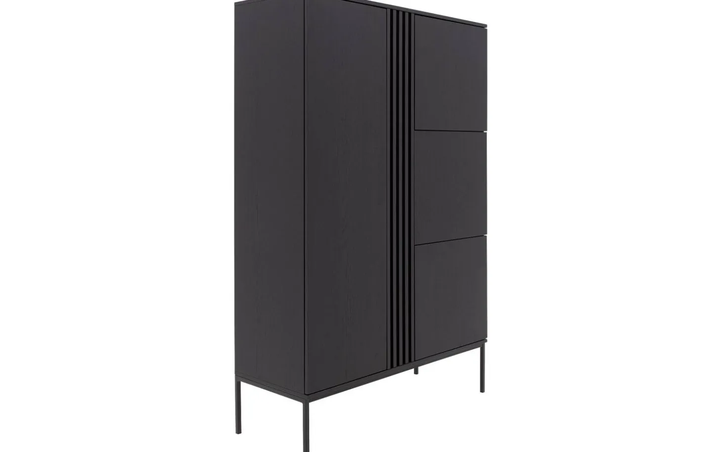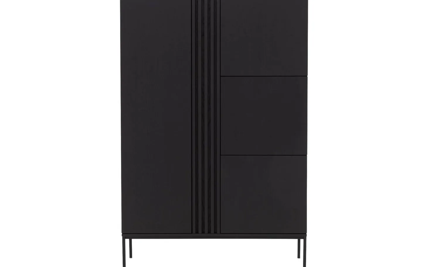 Aufbewahrungsschrank Viola bietet stilvolle Aufbewahrung mit seiner modernen Ausstrahlung und praktischen Aufteilung. Die schwarze Eichenausführung mit subtilen Metallfüßen passt perfekt in jedes zeitgemäße Interieur. Das praktische Push-to-Open-System sorgt für klare Linien ohne sichtbare Griffe – einfach drücken und die Tür öffnet sich geschmeidig.