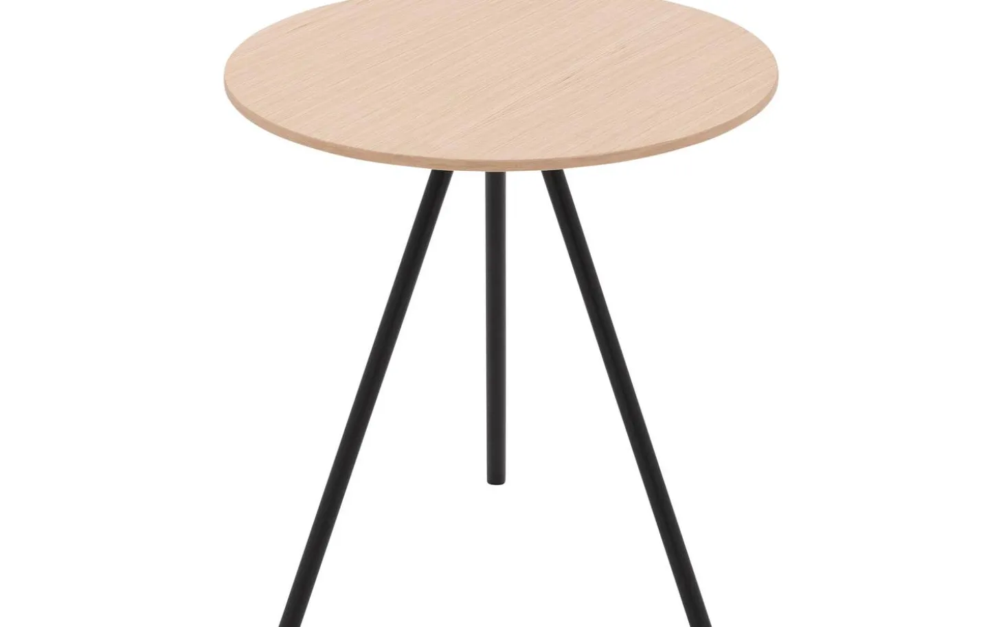 Die runde Tischplatte ist aus Eichenfurnier mit einer weißen Ölbehandlung gefertigt. Diese Behandlung schützt das Holz vor Flecken und bewahrt die natürliche Ausstrahlung. Die glatte Oberfläche ist einfach zu reinigen.