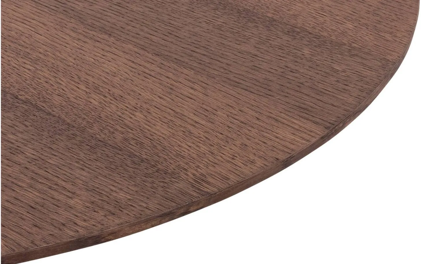 Die Platte ist aus Eichenfurnier in Nussfarbe mit Soft-Touch-Lackierung gefertigt. Diese Lackschicht schützt das Holz und hält die natürliche Maserung sichtbar und fühlbar. Die matte Ausstrahlung verleiht dem Tisch einen warmen, authentischen Look.