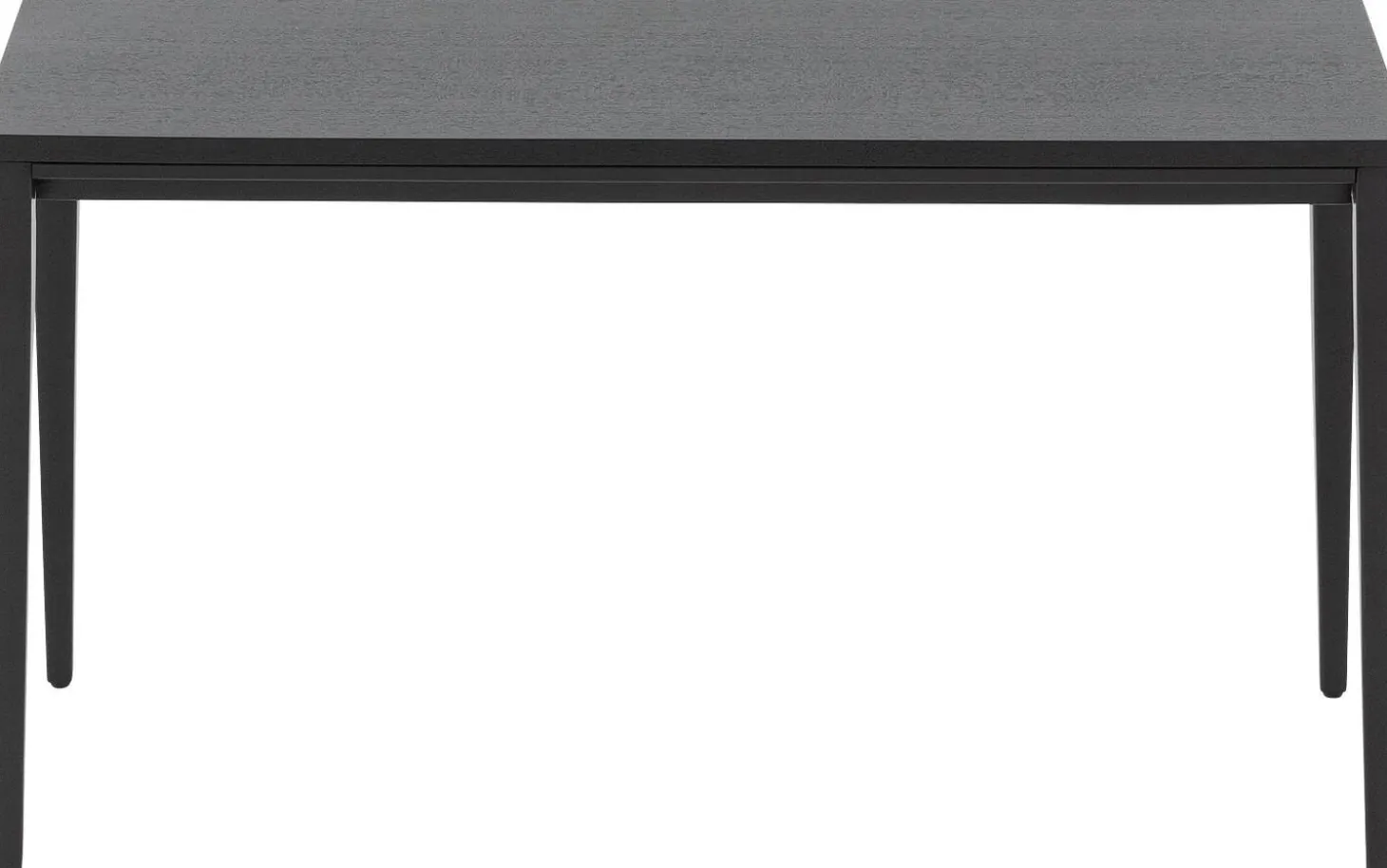 Die Tischplatte aus schwarz lackiertem Eschenfurnier weist eine schöne Holzstruktur auf, die durch die transparente Lackschicht gut sichtbar bleibt. Diese Verarbeitung schützt vor Flecken und Ringen und macht die Pflege einfach.
