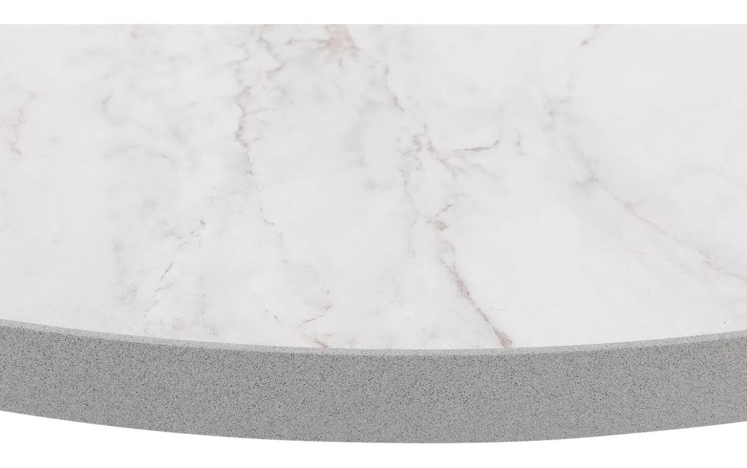 Die HPL-Platte in Rosa mit weißer Marmoroptik verleiht Livia eine luxuriöse Ausstrahlung, die zudem noch praktisch ist. Das Material ist verschleißfest und leicht zu reinigen. Die Marmoroptik sorgt für eine elegante Textur ohne den Pflegeaufwand von echtem Marmor.