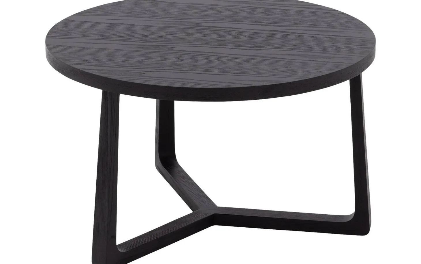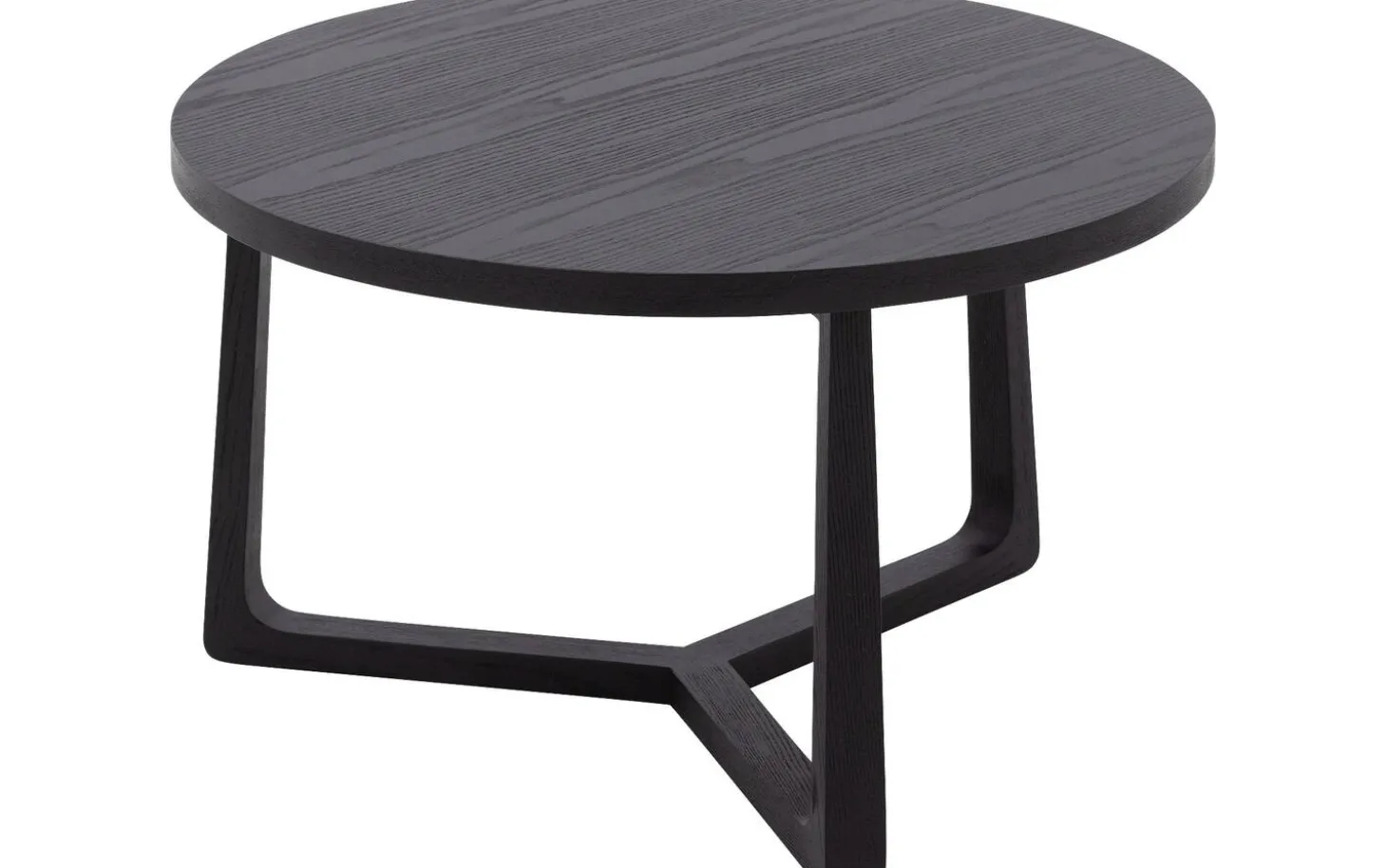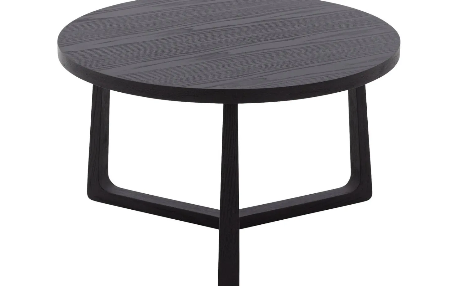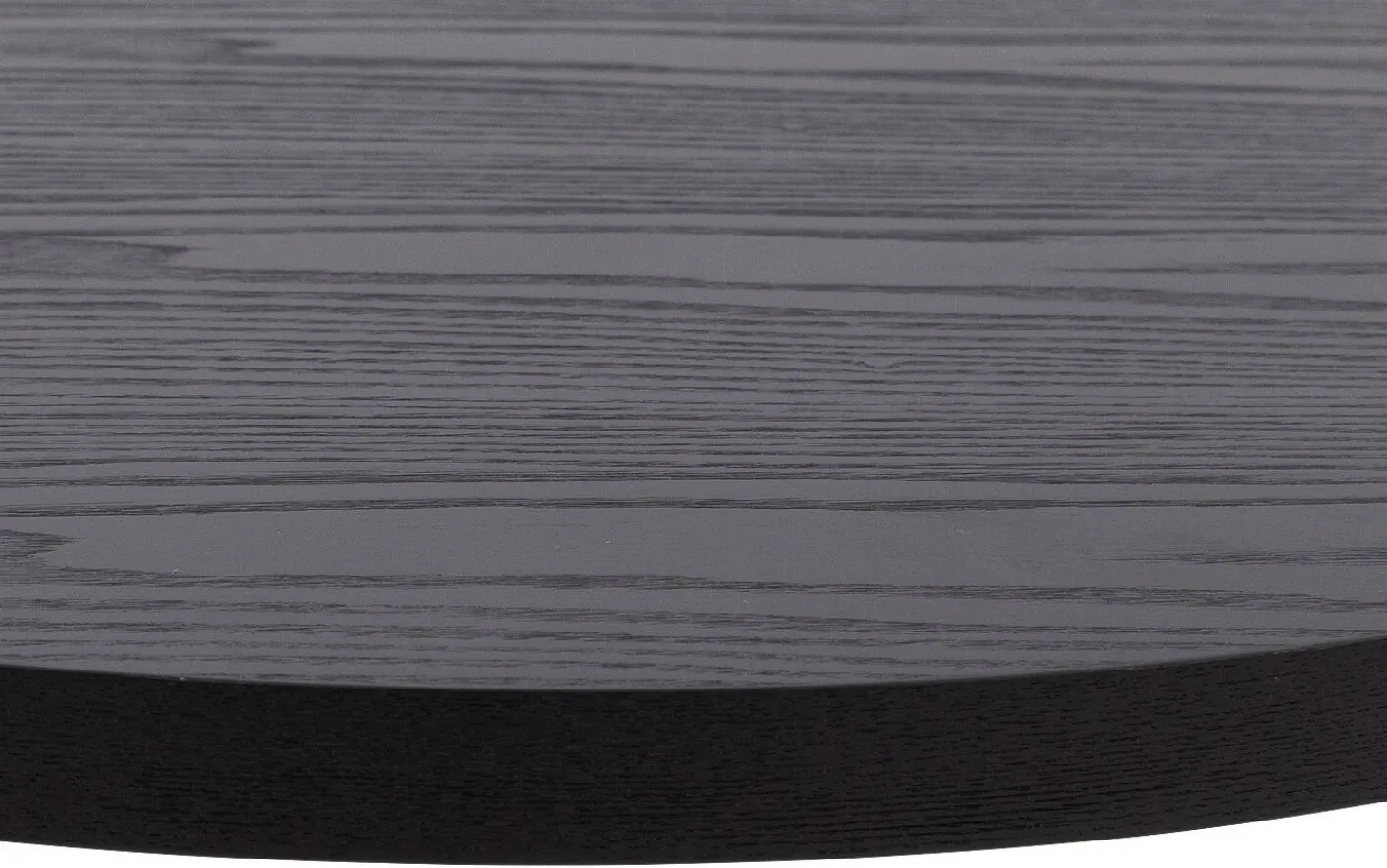 Die runde Tischplatte ist aus Eschenfurnier mit einer schwarzen lackierten Oberfläche gefertigt. Diese Schutzschicht sorgt dafür, dass der Tisch gut gegen den täglichen Gebrauch beständig ist und leicht sauber zu halten bleibt.