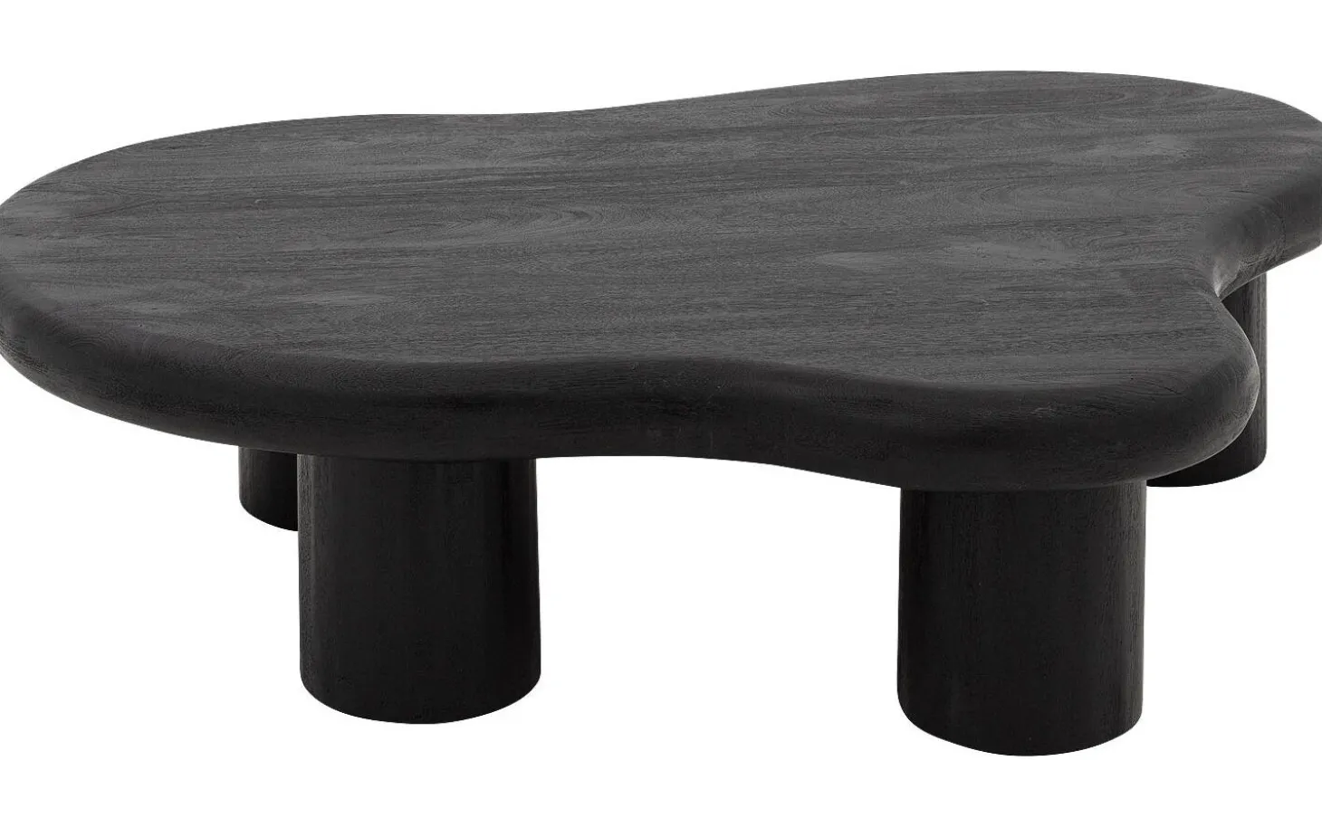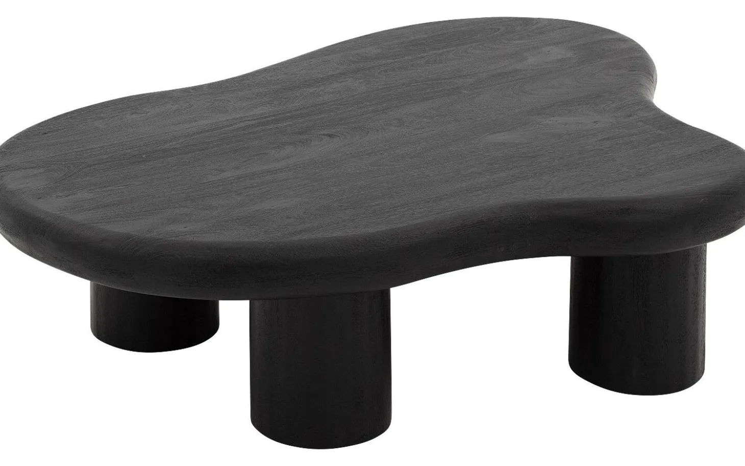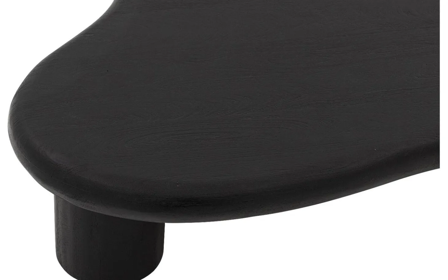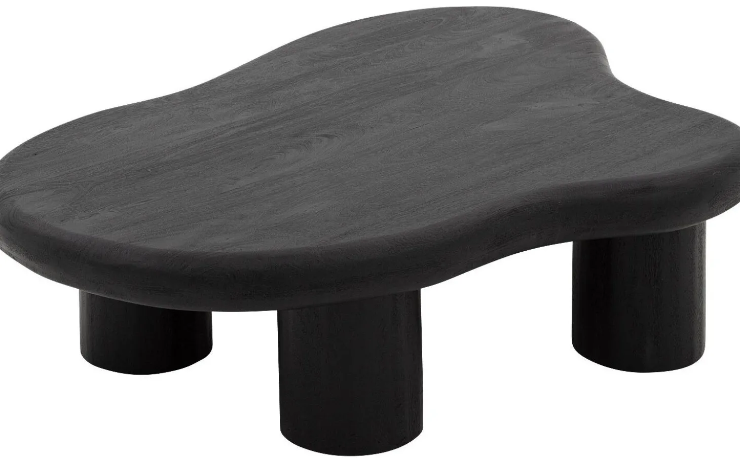 Zwarte organische salontafel Savi combineert vloeiende vormen met een donkere, diep gelakte kleur. Het mangohout in zwarte lak geeft de tafel een rijke, moderne uitstraling. De zachte contouren zorgen dat de tafel, ondanks de donkere kleur, luchtig blijft.