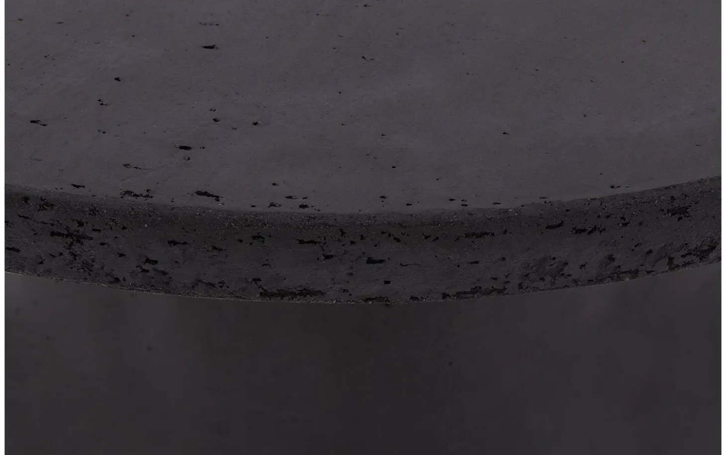 Die Tischplatte ist aus MDF mit einer dünnen Schicht Beton in der Farbe Basalt gefertigt. Die Betonoptik weist natürliche Unregelmäßigkeiten wie kleine Poren und eine gefleckte Struktur auf, die den industriellen Charakter verstärken. Für zusätzlichen Schutz ist die Platte mit einer farblosen Schutzschicht imprägniert.