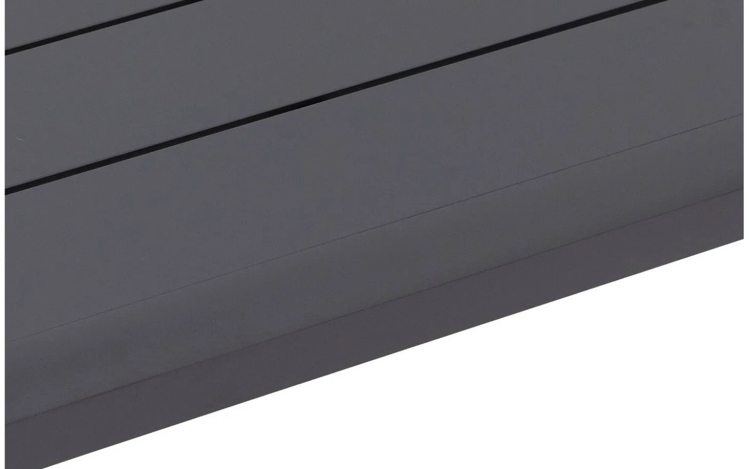 Der starke Aluminiumrahmen mit Pulverbeschichtung macht diesen Gartentisch nicht nur schön, sondern auch langlebig. Das Material ist korrosionsbeständig, was bedeutet, dass Sie lange Freude an diesem Tisch haben werden, selbst in unserem wechselhaften Klima. Die abgerundeten Ecken verleihen dem Tisch eine weiche Ausstrahlung und machen ihn sicherer in der Verwendung.