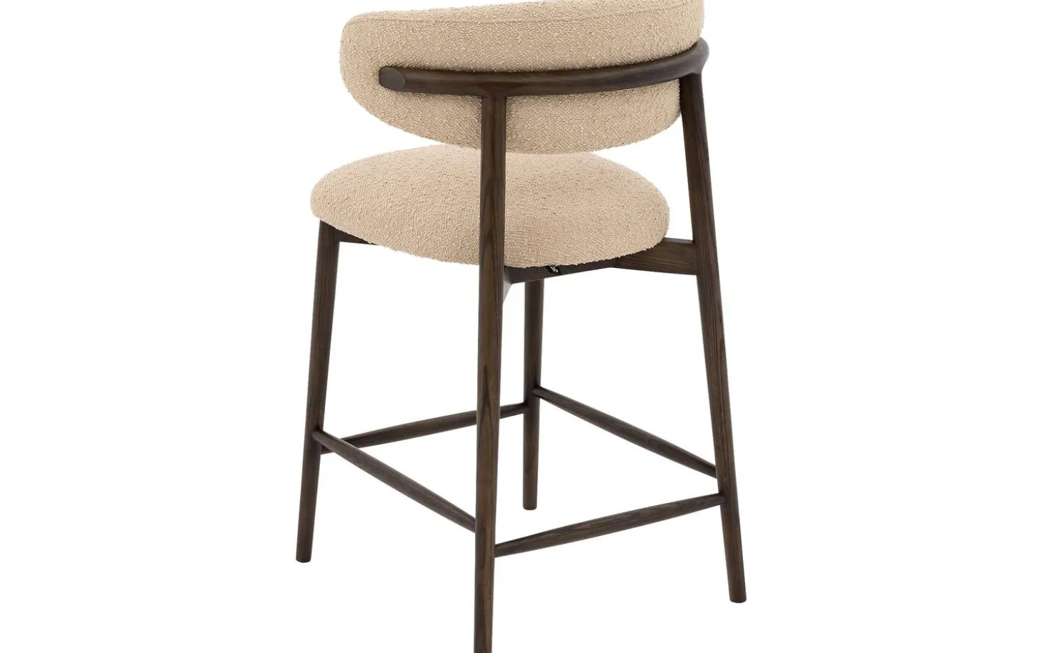 Bekijk counterstoel Diede met beige boucle bekleding. Deze stoel van 67 cm hoog is perfect voor aan de keukenbar of hoge eettafel. De zachte boucle stof geeft de counterstoel een warme en knusse uitstraling, terwijl de donkerbruine gelakte poten zorgen voor een natuurlijke en landelijke uitstraling. Ideaal voor gezellige momenten aan de bar.