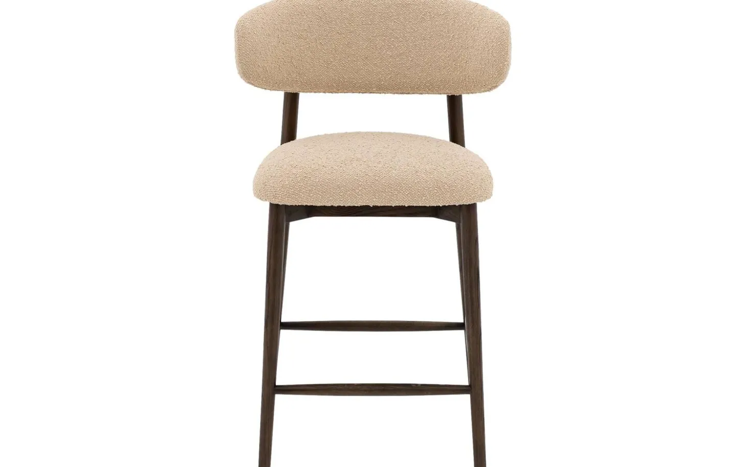 Met een breedte van 59 cm en diepte van 56 cm is deze counterstoel compact genoeg voor kleinere ruimtes, maar biedt toch voldoende zitcomfort. De stijlvolle combinatie van beige boucle en donkerbruin hout maakt Diede een mooie toevoeging aan je keuken of eetkamer.