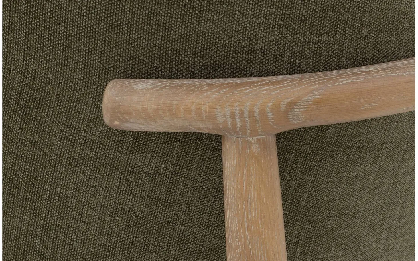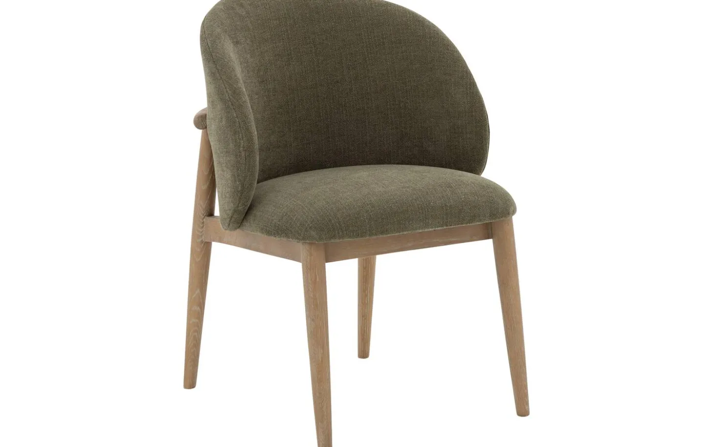 Bekijk eetkamerstoel Diederik met armleuning. Deze groene eetkamerstoel combineert stijlvol landelijk design met praktisch comfort. De fijn geweven olijfgroene stof geeft de stoel een warme, natuurlijke uitstraling die mooi past in verschillende interieurstijlen. De lichtbruine geschuurde poten met whitewash zorgen voor een sfeervolle afwerking.