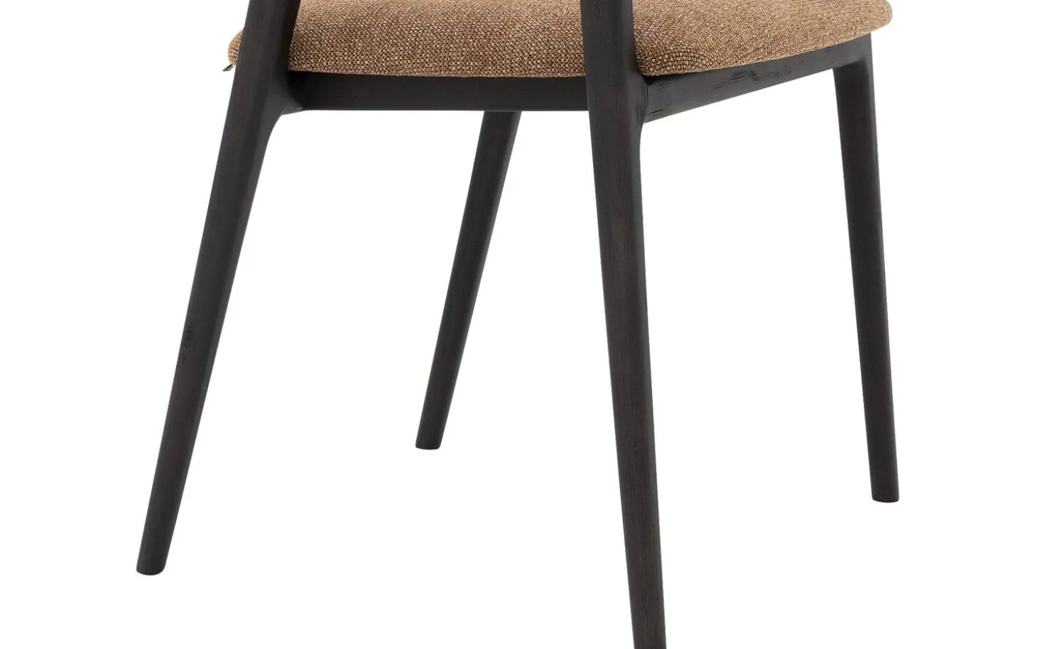 Stijlvolle details van deze bruine eetkamerstoel met armleuning