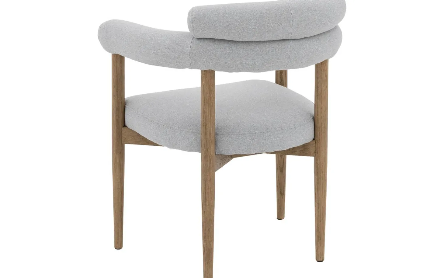 Was diesen Stuhl für den Esstisch besonders macht, ist der fein gewebte graublauer Stoff, der dem Oberfläche eine subtile Textur verleiht. Der glatte Bezug ist nicht nur schön, sondern auch sehr praktisch für den täglichen Gebrauch. Die feste Polsterung sorgt für ein straffes und zeitloses Aussehen, das lange schön bleibt.