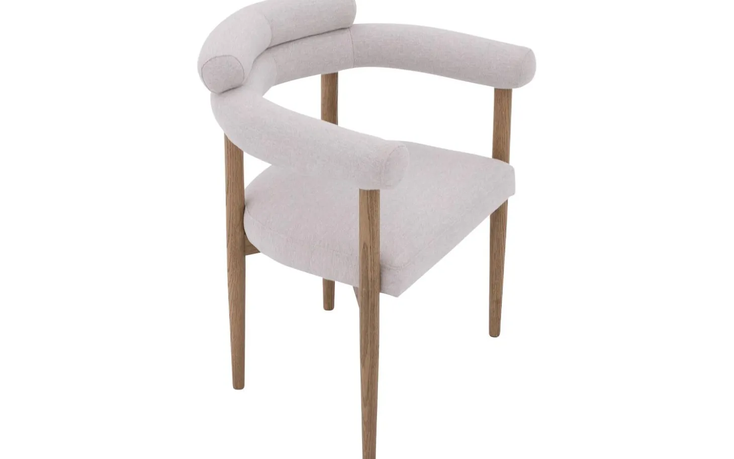 Die einzigartige runde Formgebung des Esszimmerstuhls Splinter ist sofort erkennbar. Der fein gewebte hellgraue Stoff verleiht diesem Esszimmerstuhl eine weiche, elegante Ausstrahlung. Die cognacfarbenen lackierten Eschenbeinholz-Beine bilden einen schönen Kontrast zur Polsterung und machen den Stuhl komplett.