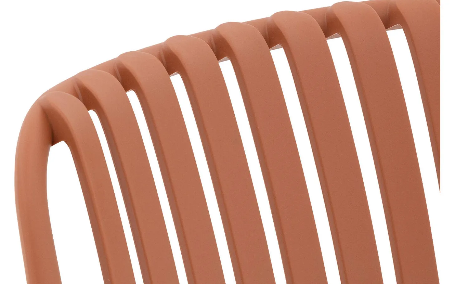 Stijlvolle details van deze oranje kunststof tuinstoel