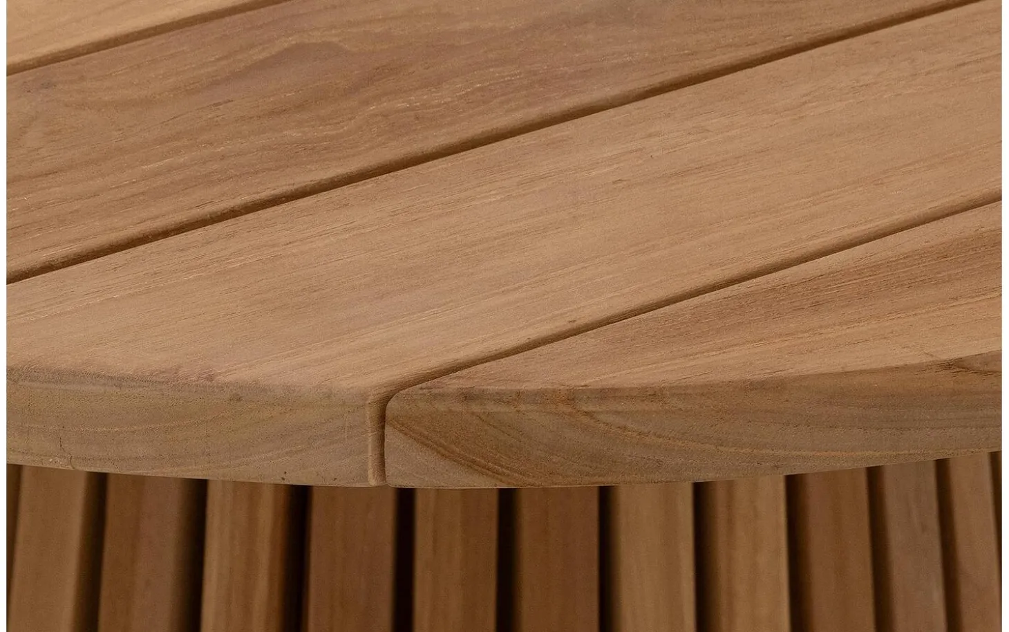 Tuintafel Idro is gemaakt van massief teakhout met een mooie, authentieke uitstraling. Het hout voelt prettig aan en vraagt weinig onderhoud. De ronde vorm zorgt voor een toegankelijke zitplek waar iedereen makkelijk met elkaar in gesprek kan.