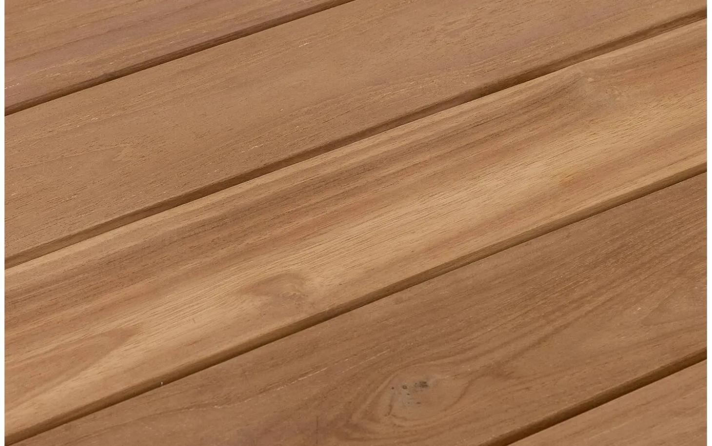 Het onbewerkte teakhout heeft een warme, naturel kleur die prachtig past in elke tuin. Door de natuurlijke structuur van het hout is elk exemplaar net even anders. De tijd doet zijn werk en geeft de tafel steeds meer karakter. Hou je toch van die warme uitstraling? Dan kun je het hout behandelen met een speciale teakolie.
