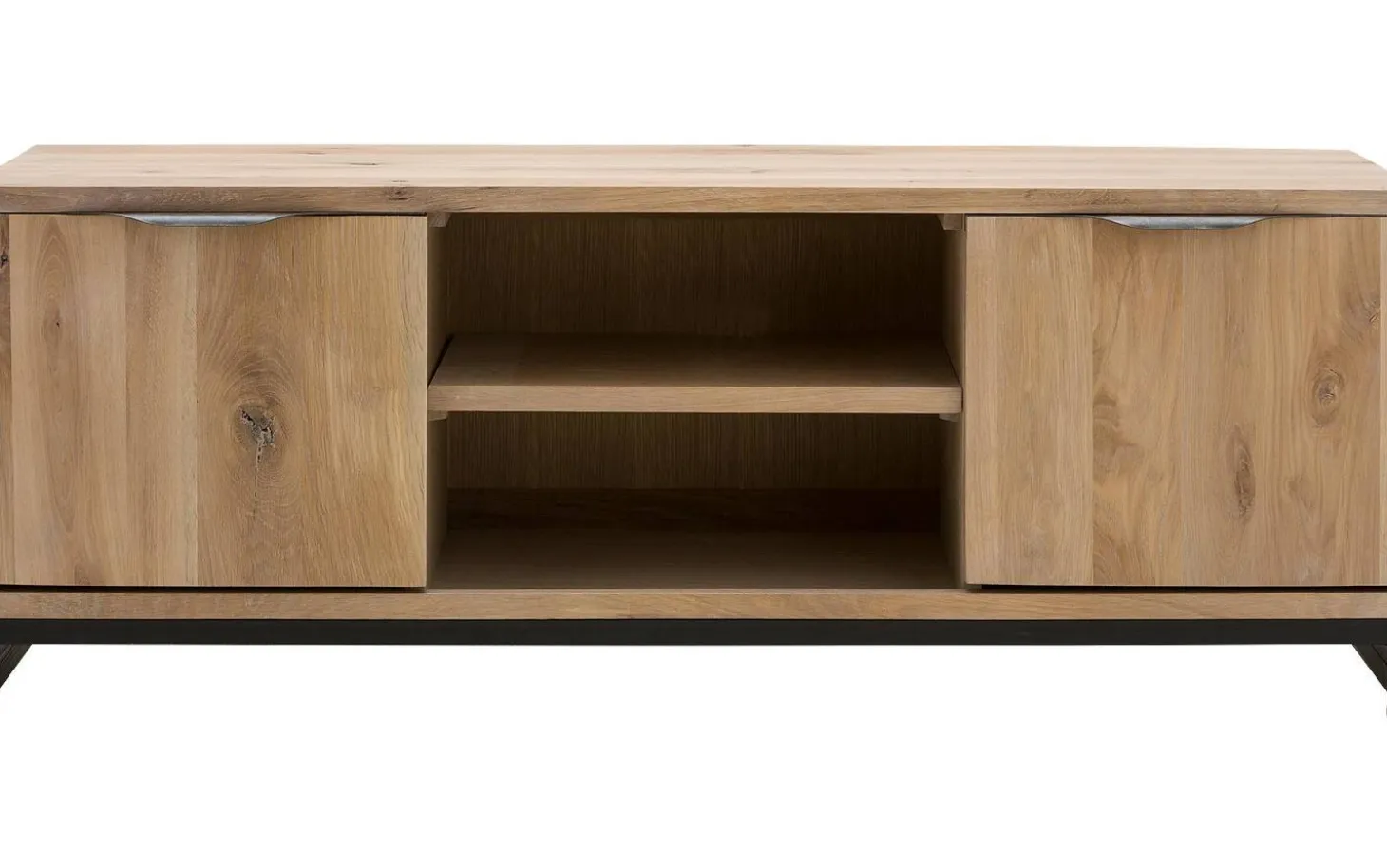 TV-Möbel Max bringt industrielle Robustheit in Ihr Wohnzimmer. Die gebürstete Eiche mit unbehandelter Oberfläche hat eine gelebte Ausstrahlung, die Ihrem Interieur Charakter verleiht. Die Kombination aus warmer Holzmaserung und metallenen Details sorgt für eine kraftvolle Ausstrahlung, die sofort auffällt.