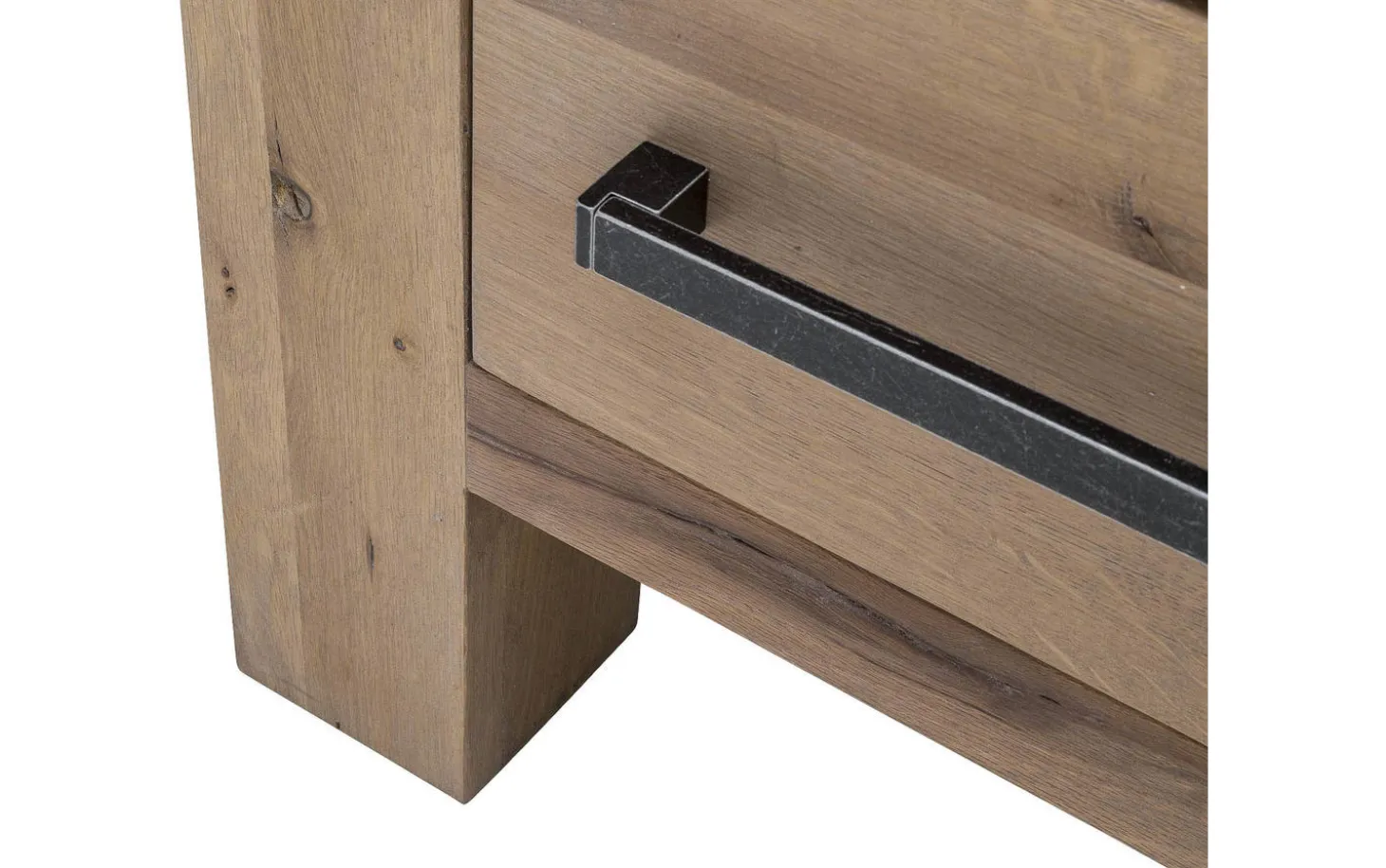 Dieses graue Eichen-TV-Möbel bringt pure Naturkraft in Ihr Wohnzimmer. Roots kombiniert markante Holzstruktur mit praktischem Stauraum und sanften Soft-Closing-Schubladen. Die warme Eichen-Ausstrahlung mit grauer Öl-Veredelung verleiht jedem Interieur sofort Charakter.