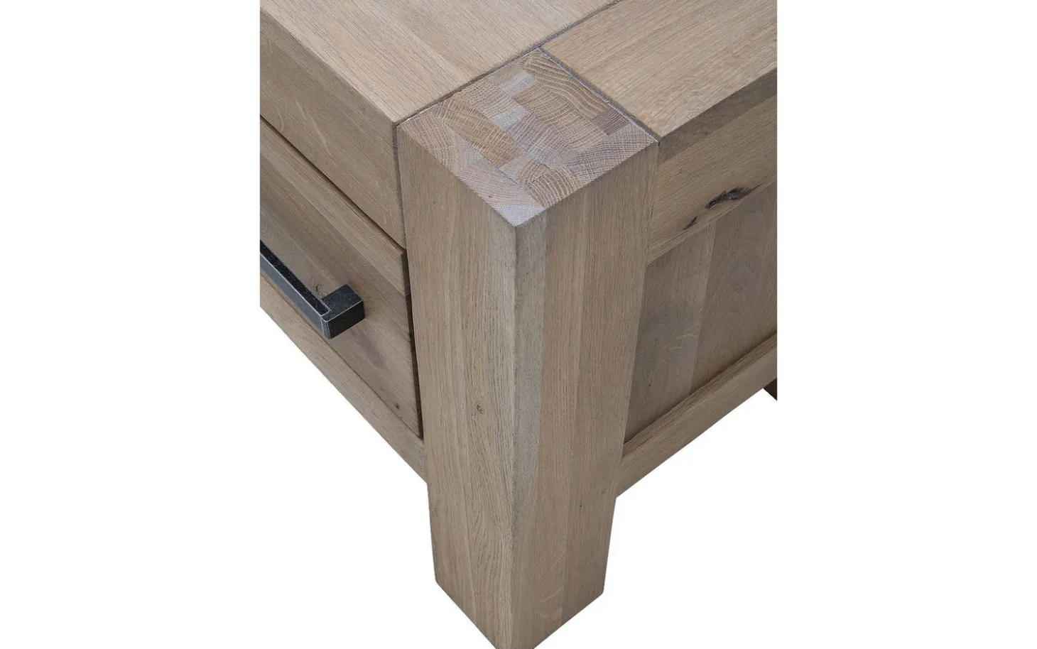 Das Eichenholz ist mit einer schützenden Öl-Veredelung behandelt, die das Holz weniger empfindlich gegen Flüssigkeiten macht. So behält TV-Möbel Roots seine natürliche Ausstrahlung und hält jahrelang.