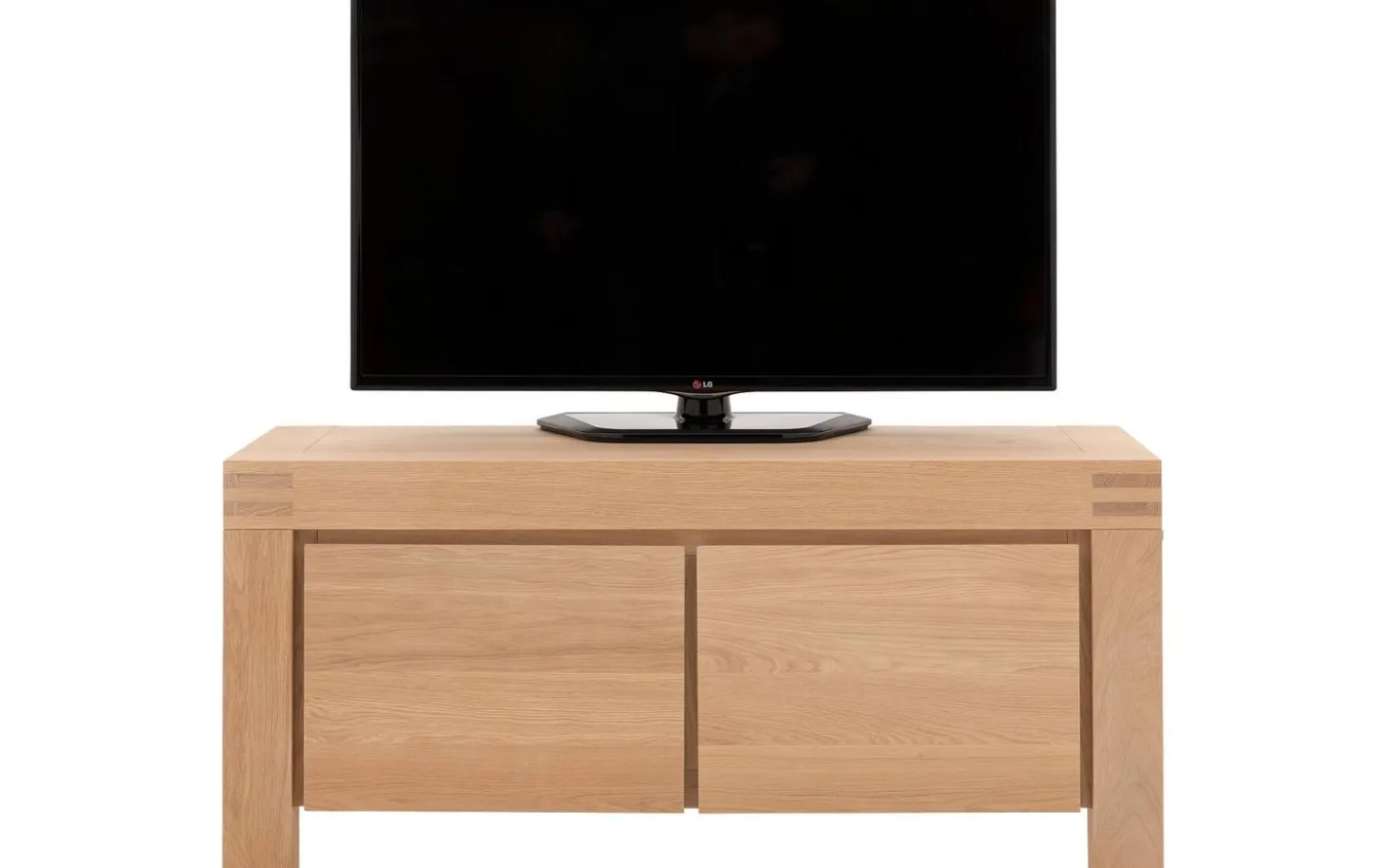 De soft touch lak beschermt het eiken hout effectief tegen vlekken en kringen, terwijl de natuurlijke nerftekening mooi zichtbaar blijft. De twee kleppen sluiten zacht dankzij het soft closing systeem – ook als je ze per ongeluk te hard dichtduwt. Het staande tv meubel (160 x 55 x 45 cm) biedt volop ruimte voor je televisie en apparatuur.