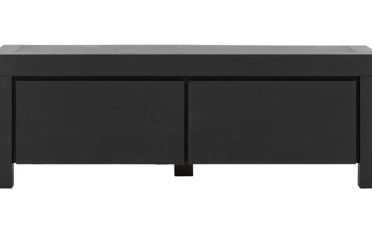 TV meubel Clear maakt indruk met zijn landelijke uitstraling en stoere zwarte afwerking. Het eiken met soft touch lak zorgt voor een matte uitstraling waarbij de natuurlijke houtnerf mooi zichtbaar blijft. Perfect voor wie houdt van een warme, authentieke sfeer in huis.