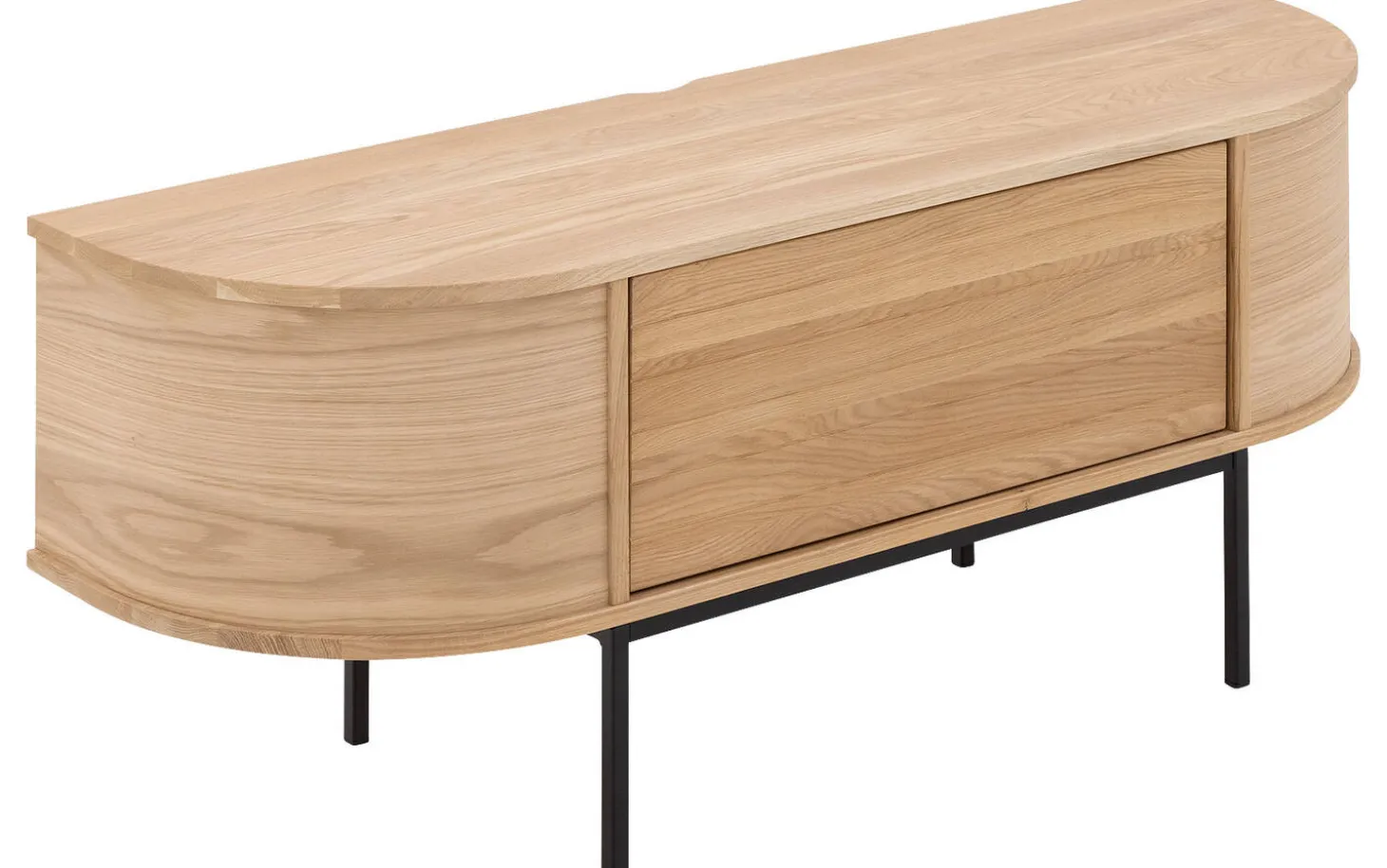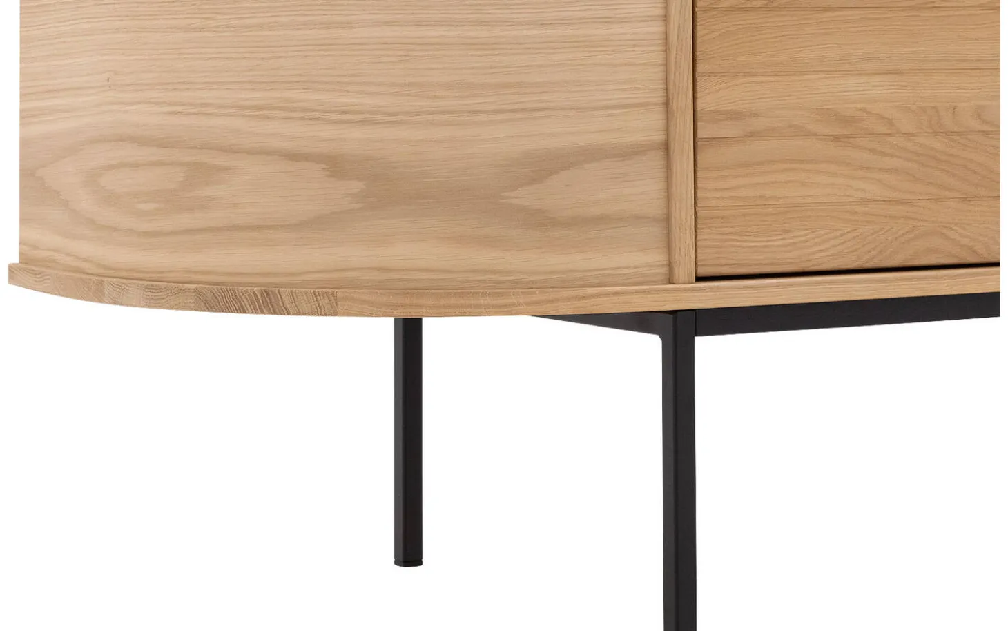 TV-Möbel Delfina kombiniert die Wärme von Eiche mit moderner Funktionalität. Die sanften Rundungen und die vertikal gestreifte Tür verleihen diesem niederländischen Design eine einzigartige Ausstrahlung. Mit praktischer Push-to-Open-Funktion und optionalen Füßen schaffen Sie genau den Look, der zu Ihrem Interieur passt.