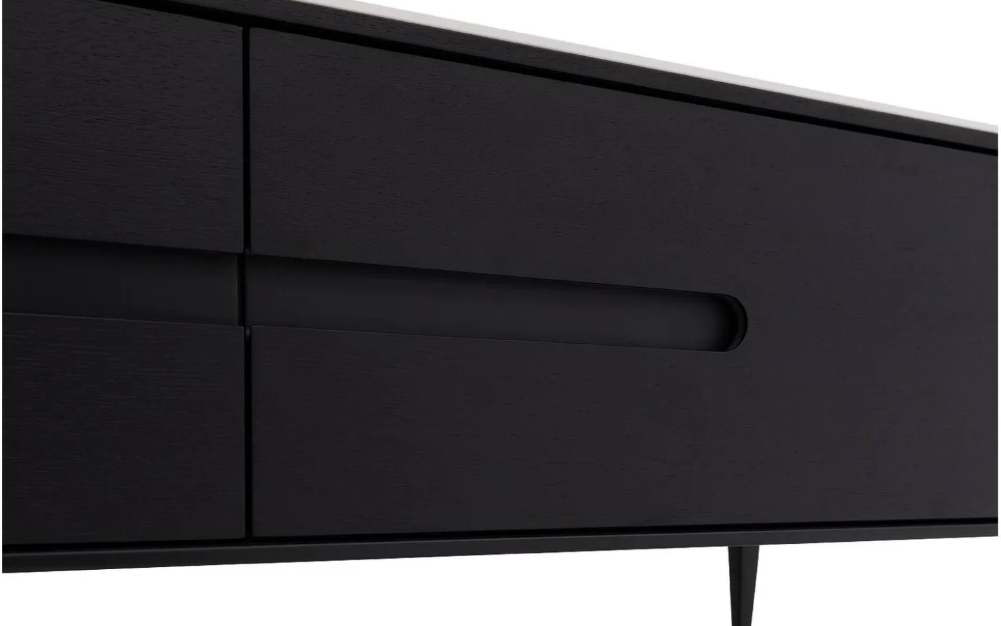 Die schwarze Lackschicht auf dem Eschenholzfurnier verleiht TV-Möbel Dexter seine zeitlose Ausstrahlung. Die luxuriöse Marmorplatte bildet einen wunderschönen Kontrast zu dem dunklen Holz und bietet Schutz vor Kratzern und Flecken. Die ausgefrästen Griffe fügen dem Ganzen einen Hauch von Raffinesse hinzu.