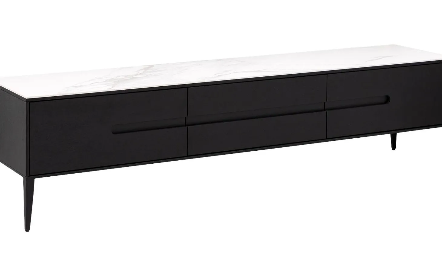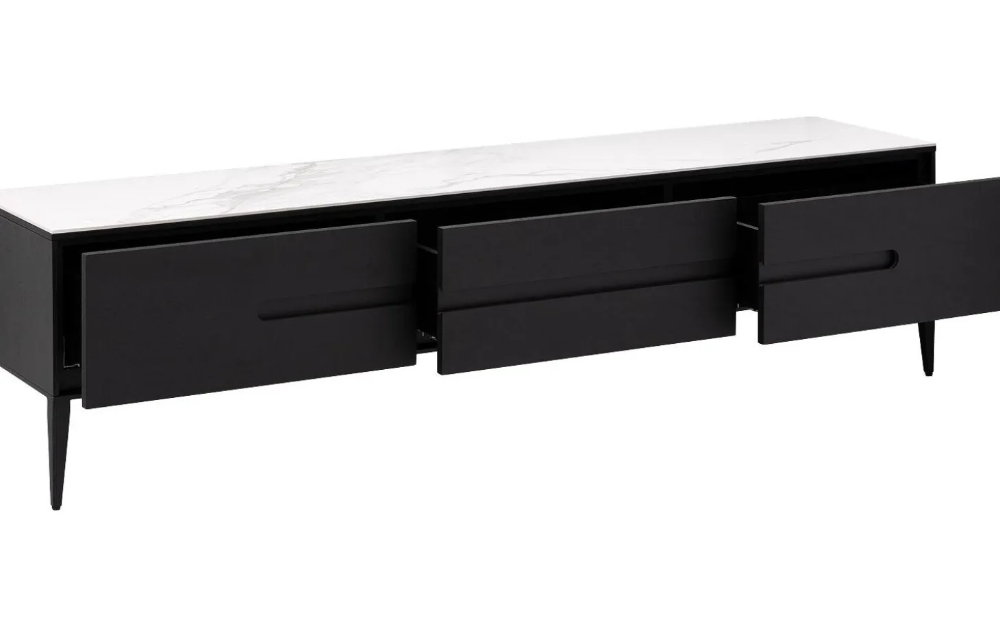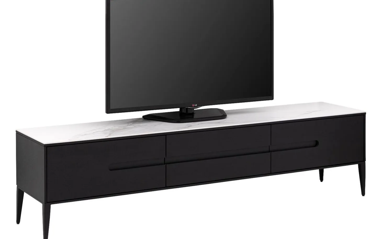 Die drei Schubladen schließen dank des Soft-Closing-Systems immer sanft und geräuschlos. So schützen Sie das Möbel vor harten Stößen und genießen jahrelangen Nutzungskomfort. Mit einer Breite von 180 cm haben Sie ausreichend Platz für Ihren Fernseher und Ihre Geräte.