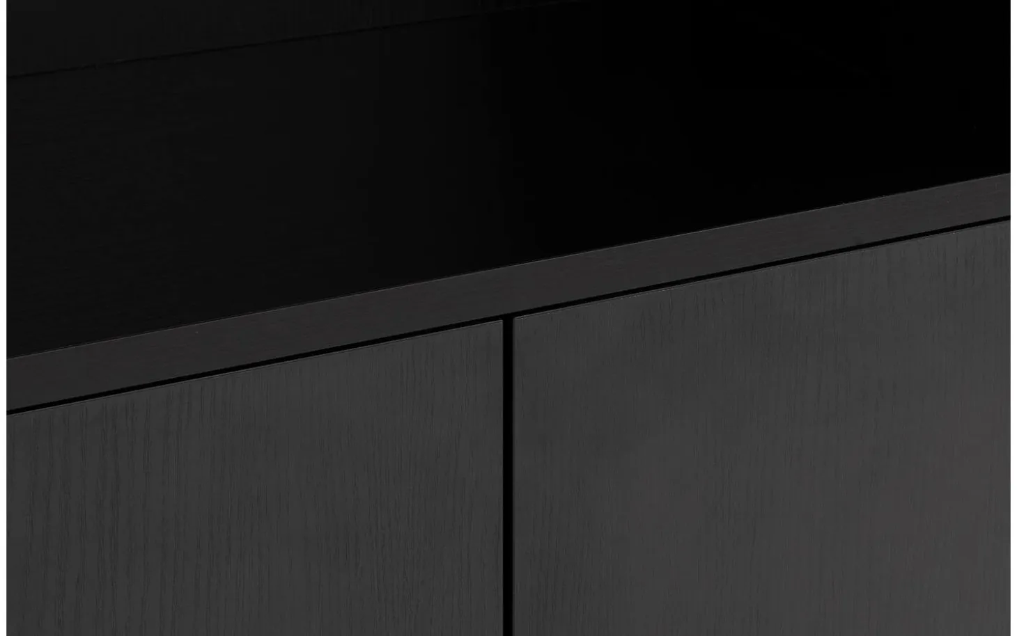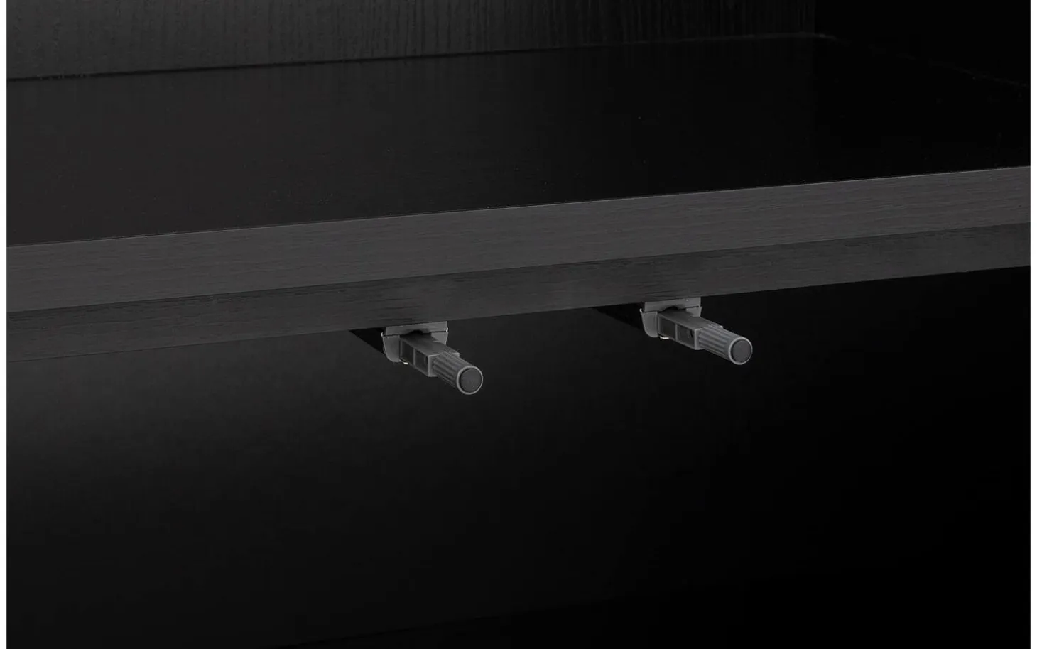 Das TV-Möbel Madrid verleiht Ihrem Wohnzimmer sofort eine moderne und organisierte Ausstrahlung. Das geradlinige Design ohne Griffe sorgt für Ruhe in Ihrer Einrichtung, während die schwarze Kunststoffoberfläche mit Holzstruktur für Wärme und Charakter sorgt. Perfekt geeignet für Fernseher bis 55 Zoll.