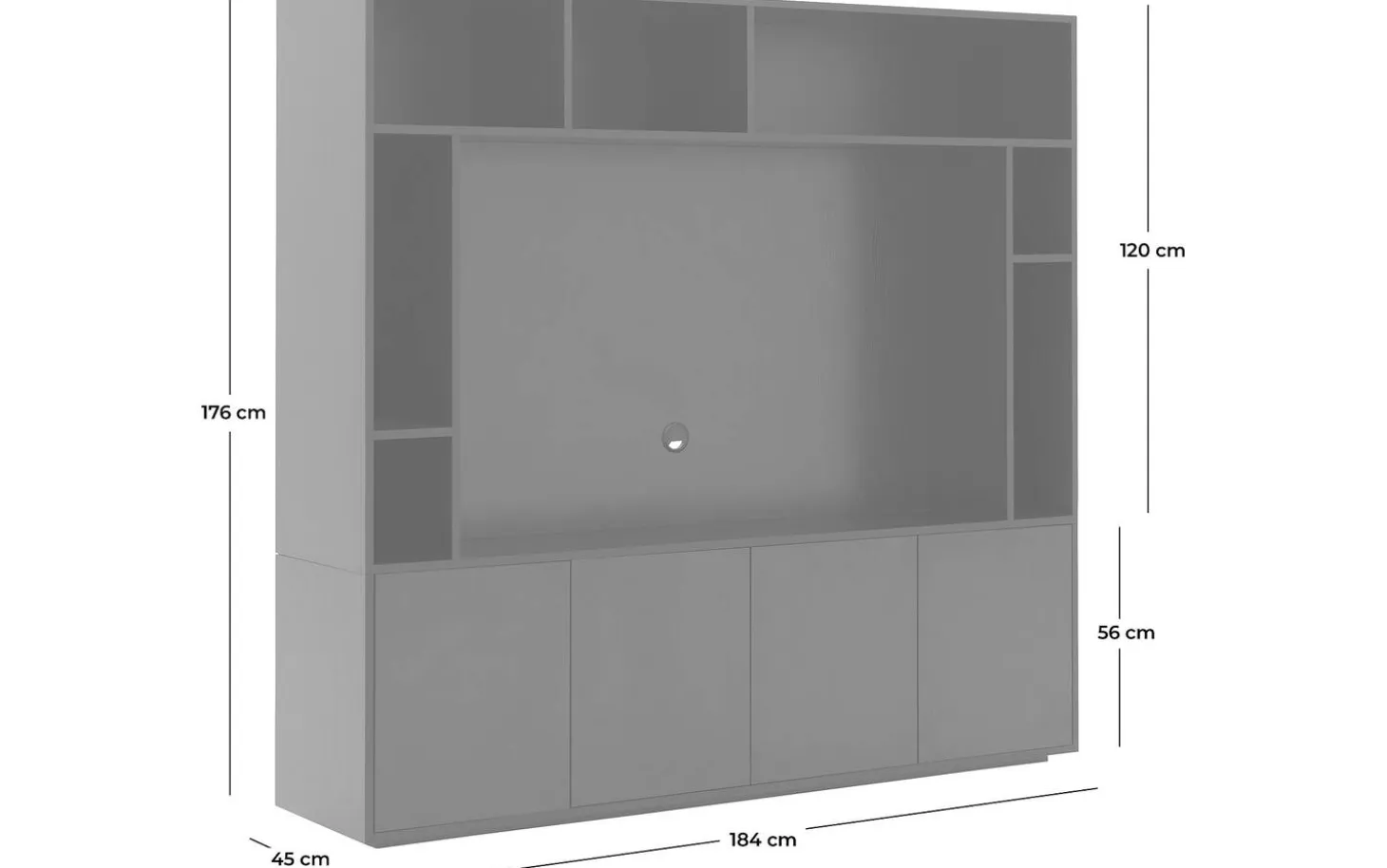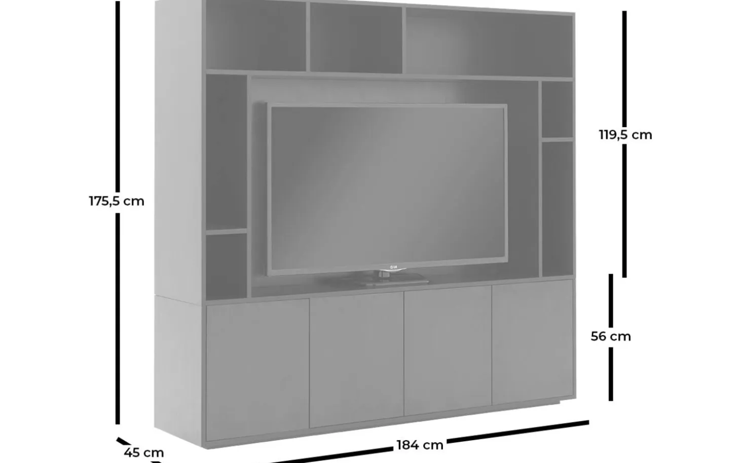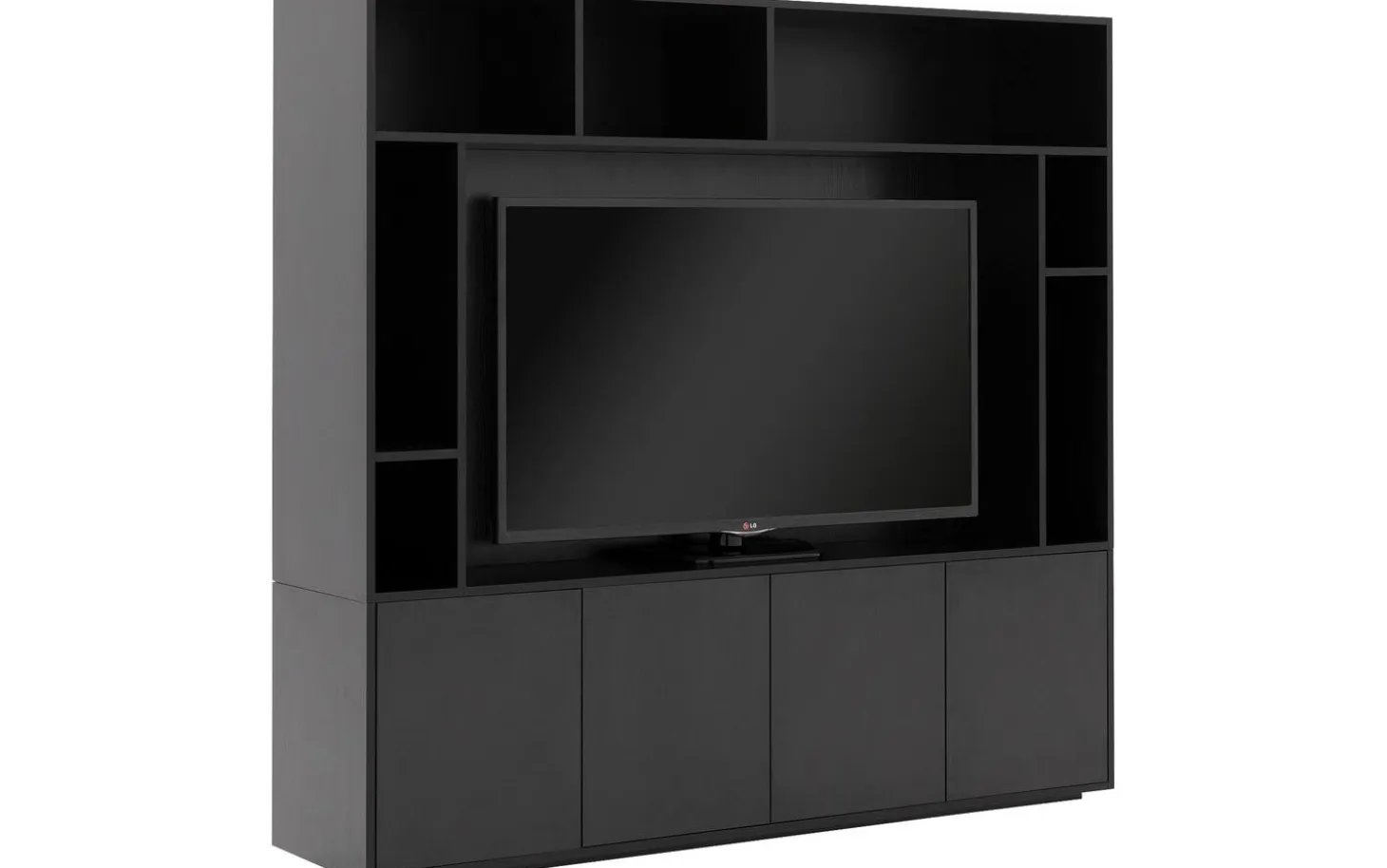 Ihren Fernseher können Sie sowohl im Möbel aufhängen als auch stehend darauf platzieren. Die geräumigen Fächer (Höhe 86 cm, Breite 141 cm) bieten genügend Platz für Ihre Geräte, während der geschlossene Stauraum für eine aufgeräumte Ausstrahlung in Ihrem Wohnzimmer sorgt.