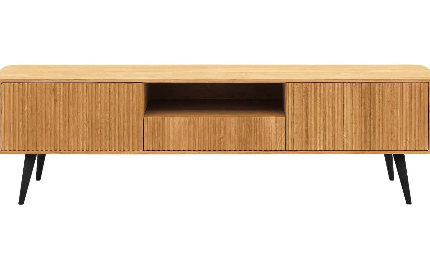 TV-Möbel Seppe bringt skandinavische Ruhe in Ihr Wohnzimmer. Das Retro-Design in natürlicher Eiche schafft eine warme, einladende Atmosphäre, die Sie jeden Tag genießen können. Mit praktischem Stauraum für all Ihre Sachen und einer zeitlosen Ausstrahlung, die nie langweilig wird.