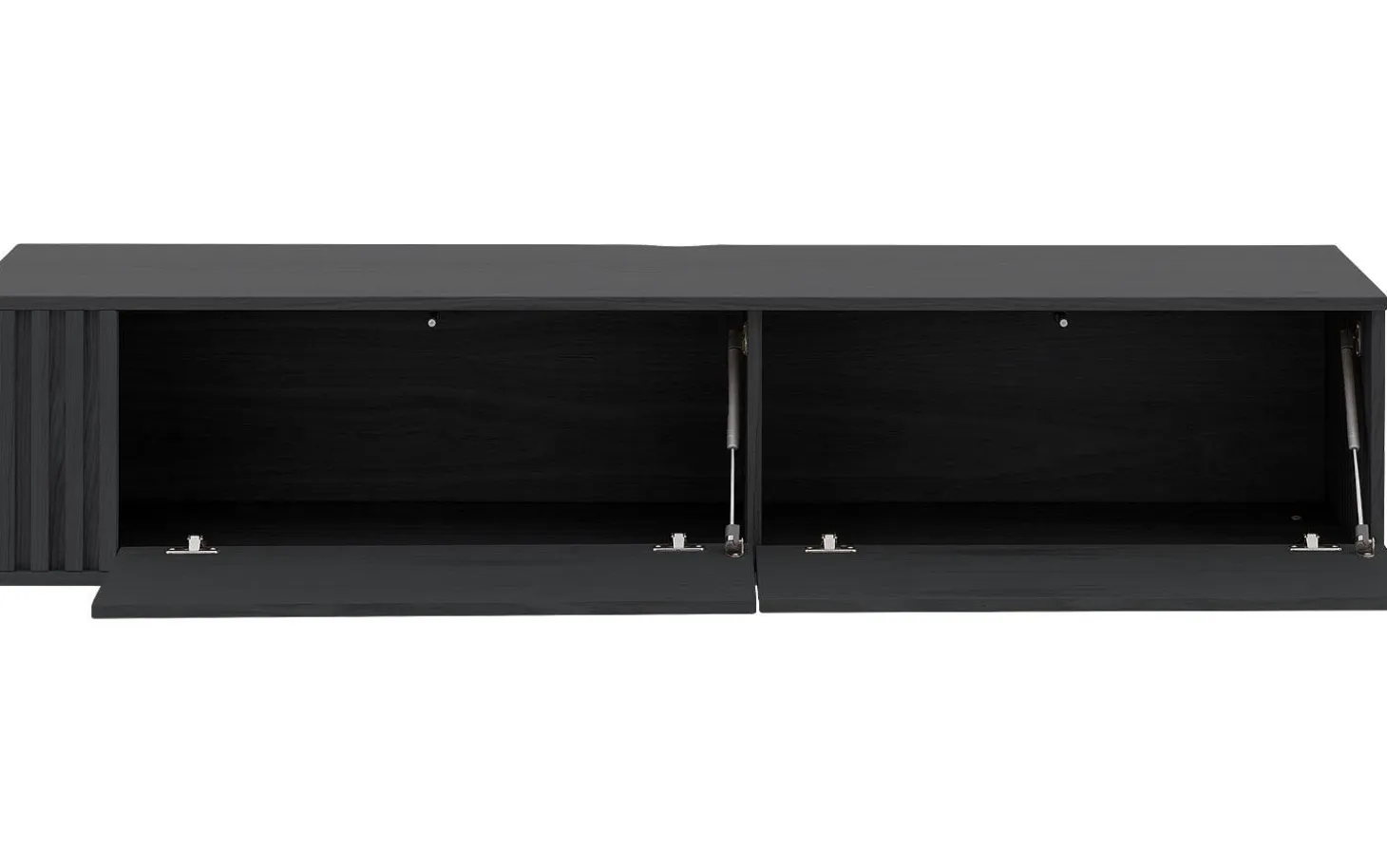 Die zwei geräumigen Fächer hinter den Klappen bieten reichlich Platz für Ihre TV-Geräte, Spielkonsolen und Zubehör. Durch die hängende Montage bleibt der Boden frei und Sie schaffen eine aufgeräumte, luftige Ausstrahlung in Ihrem Wohnzimmer.