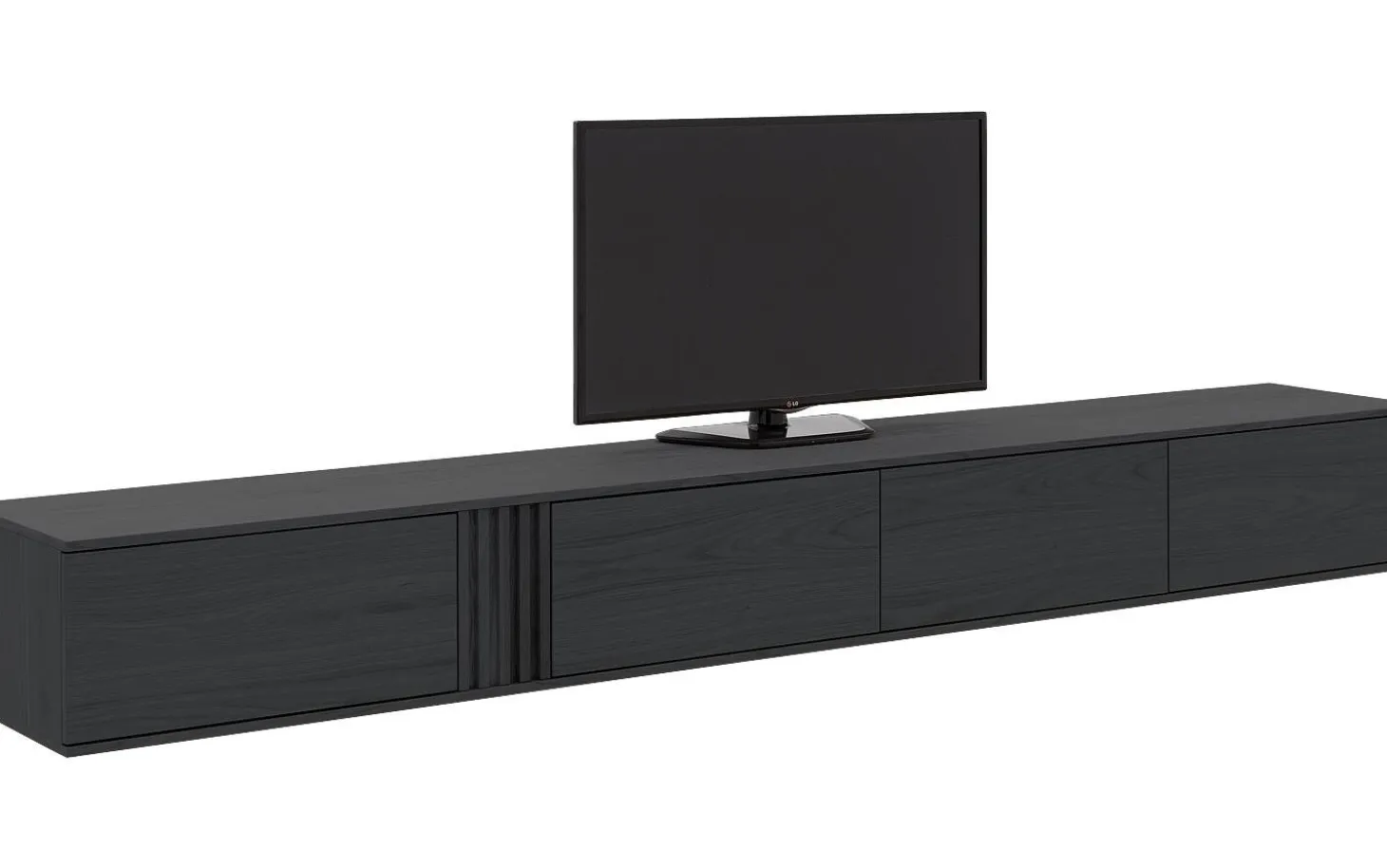 TV-Möbel Viola bringt klare Eleganz in Ihr Wohnzimmer mit seiner modernen grauen Eichen-Ausstrahlung. Dieses hängende TV-Möbel mit 300 cm Breite bietet großzügigen Stauraum hinter vier stilvollen Klappen mit Push-to-Open-System. Die subtile graue Holzoptik und schlanken Abmessungen verleihen Ihrem Interieur direkt eine luxuriöse, aufgeräumte Ausstrahlung.