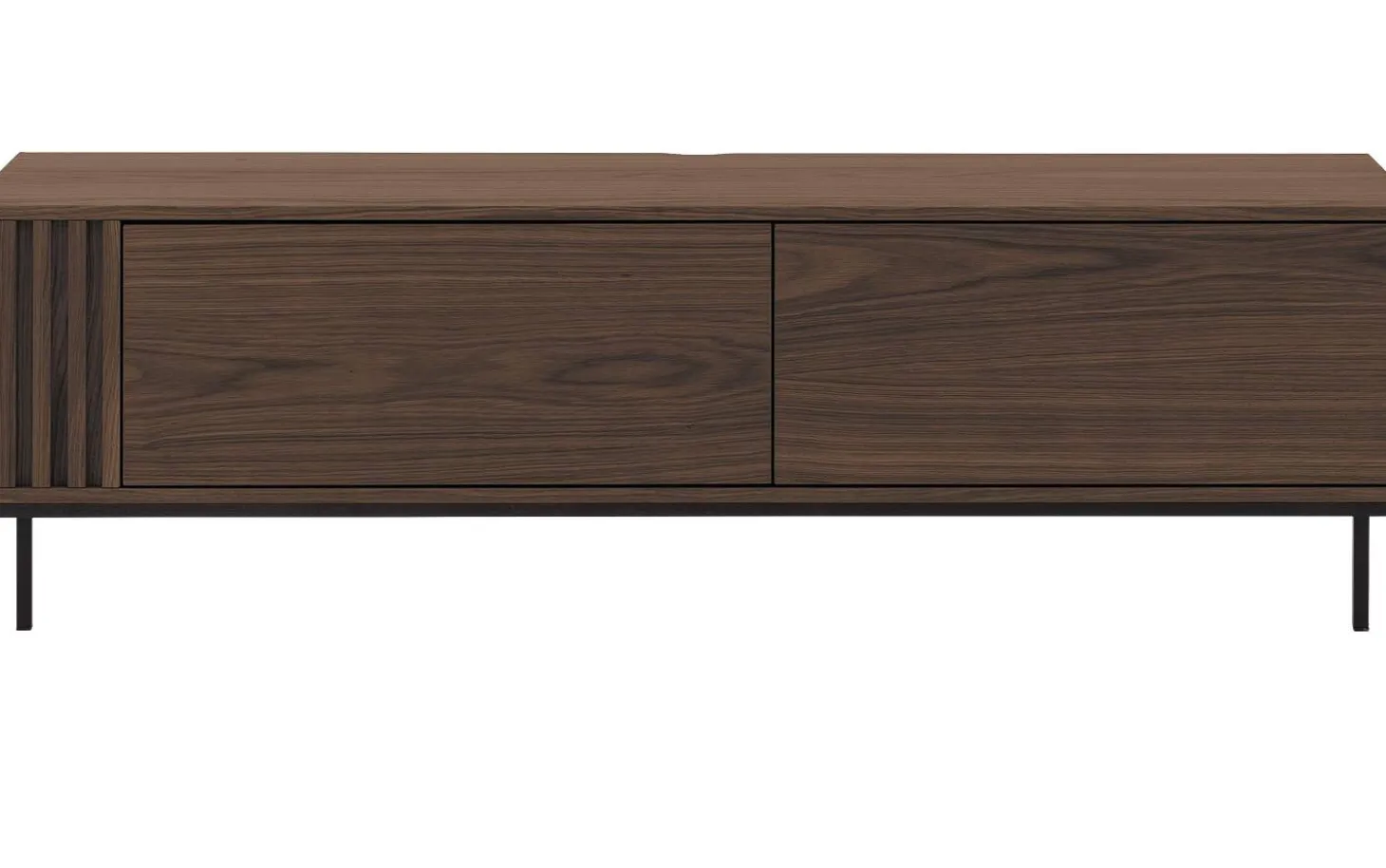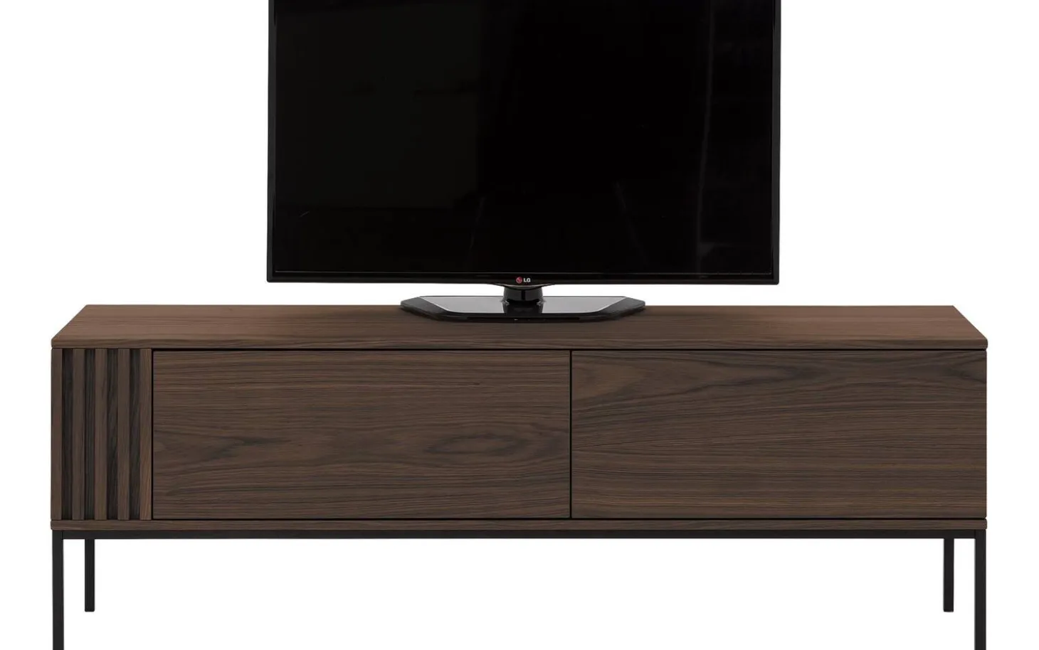 TV-Möbel Viola strahlt Wärme und Eleganz aus dank des wunderschönen Eichenfurniers in Espresso-Farbe. Die Kombination mit den schwarzen Metallfüßen verleiht diesem stehenden TV-Möbel eine moderne Note. Perfekt für das ordentliche Verstauen Ihrer Geräte, während Ihr Wohnzimmer stilvoll bleibt.