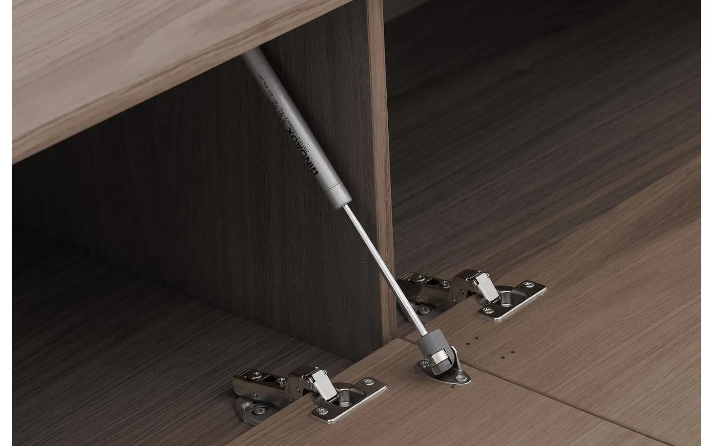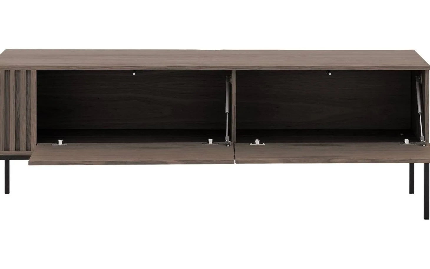 Hinter den beiden Klappen finden Sie ausreichend Platz für Ihre TV-Geräte, Spielkonsolen und andere Gegenstände. Das Push-to-Open-System sorgt für eine elegante Ausstrahlung ohne störende Griffe. Einfach kurz drücken und die Tür öffnet sich geschmeidig.