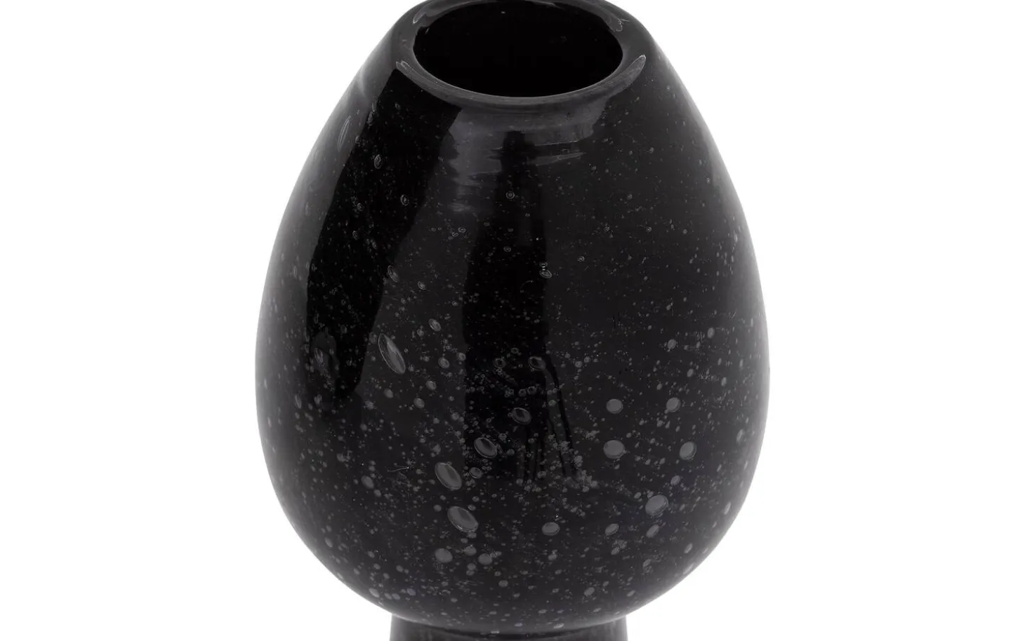 Vase Eydis bringt stilvolle Eleganz in Ihr Interieur mit ihrem auffälligen schwarzen Glasdesign und verspielten Sprenkelungen. Diese 22 cm hohe Glasvase kombiniert eine moderne Form mit einer charakteristischen Textur, die das Licht wunderschön reflektiert. Die kompakten Abmessungen von 11 x 22 x 11 cm machen diese schwarze Vase perfekt für verschiedene Plätze im Haus, vom Esstisch bis zur Fensterbank. Ob Sie nun frische Blumen präsentieren oder die Vase als dekoratives Element verwenden, Eydis fügt Ihrem Styling immer eine raffinierte Note hinzu.