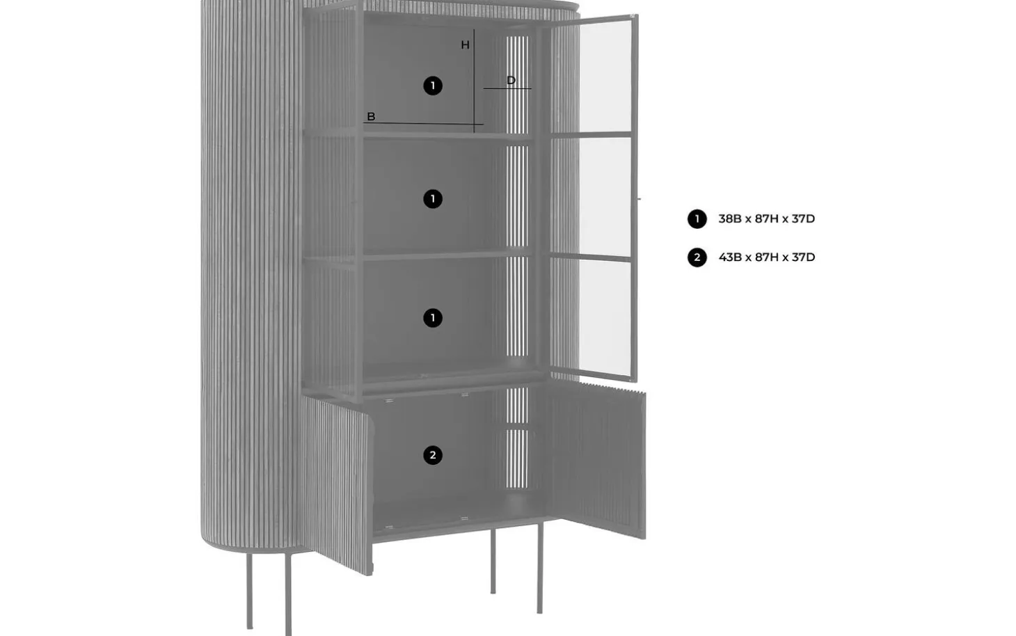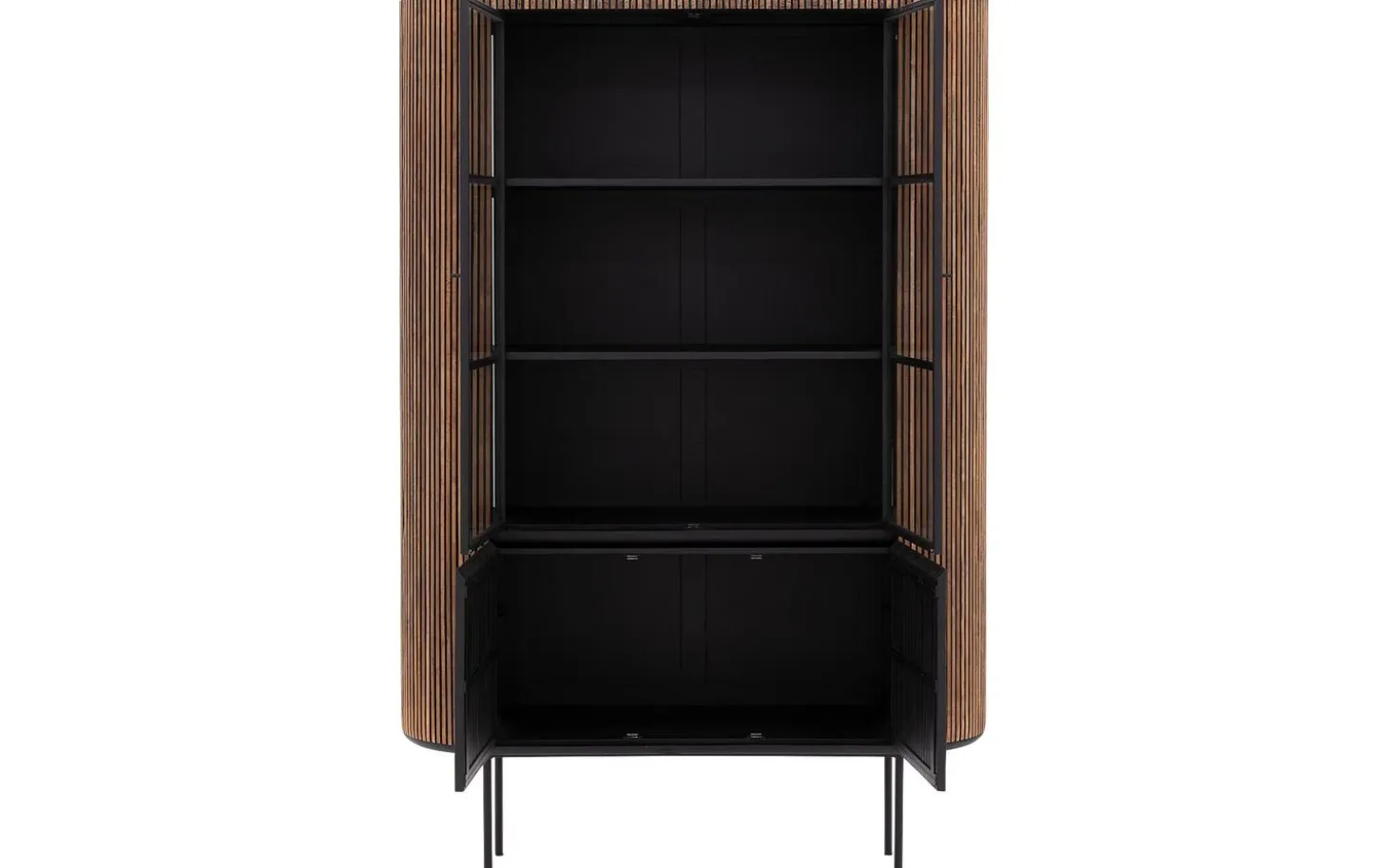 - Zwei Glastüren zur Präsentation und zwei geschlossene Türen für Stauraum