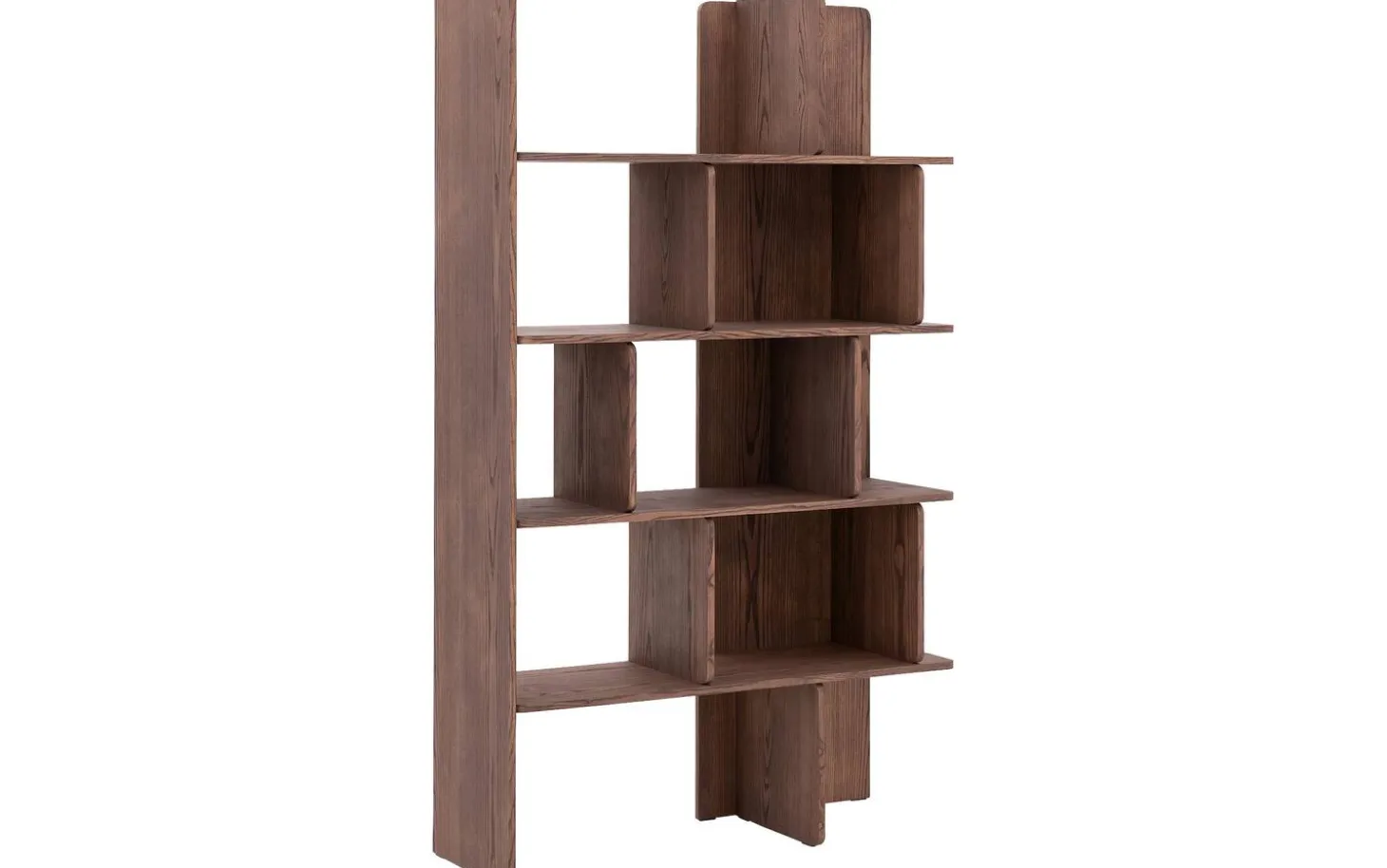 Dieses Eichen-Wandregal strahlt warme Eleganz aus dank der reichen Nussfarbe. Die spielerische Aufteilung der Fächer sorgt für ein dynamisches Spiel von Licht und Schatten an Ihrer Wand. Perfekt für alle, die eine organisierte Ausstrahlung mit einem kreativen Touch lieben.